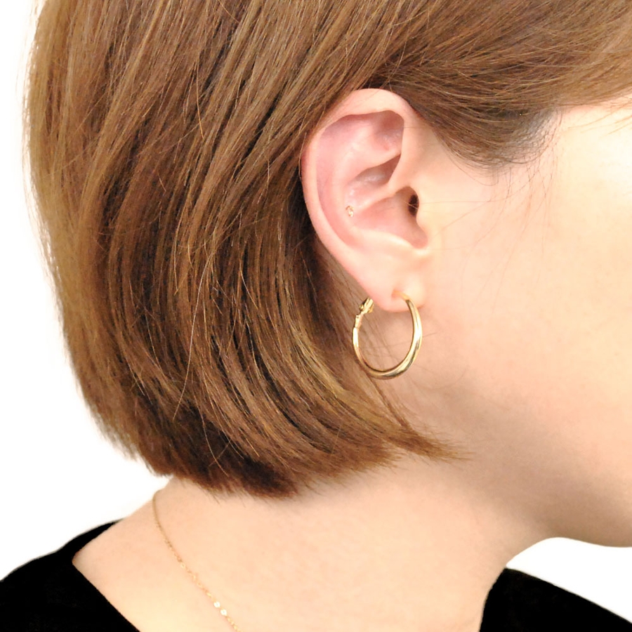 細めのフープが魅力のラウンドプーフイヤリング♪
