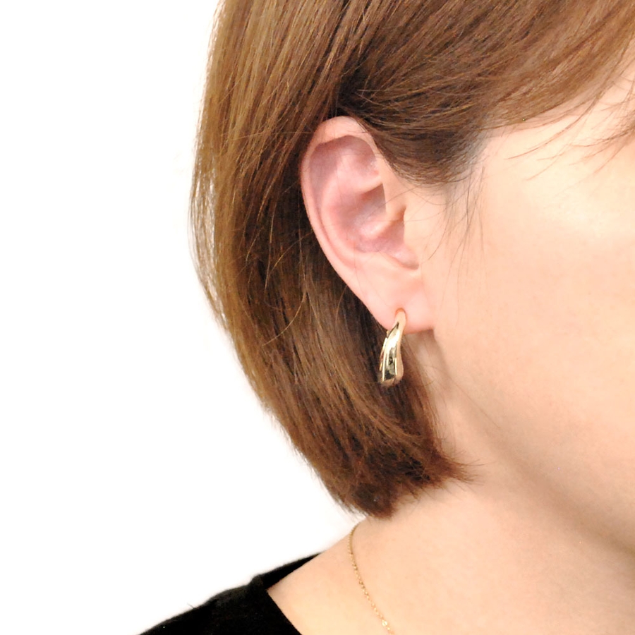 メタルの曲線ラインが美しい、ニュアンスフープイヤリング♪