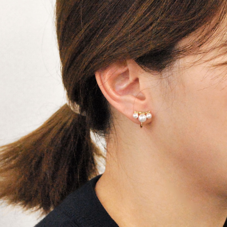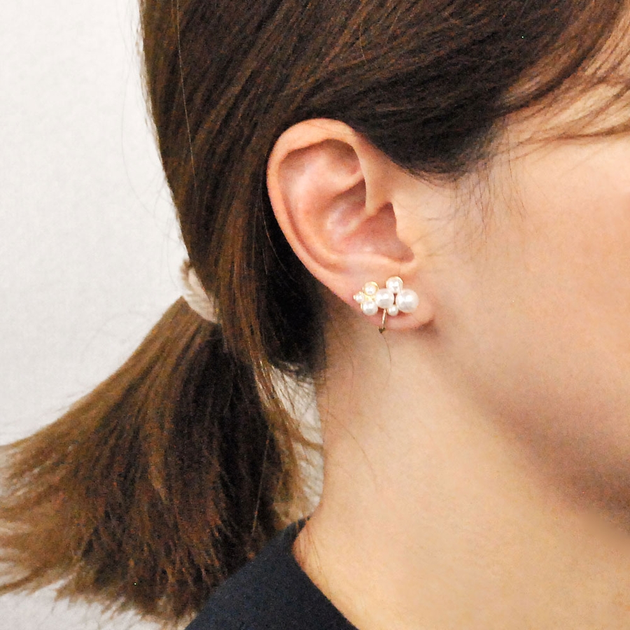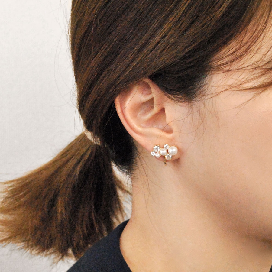小粒のパールがアクセントになっており、耳元が華やかな印象に!