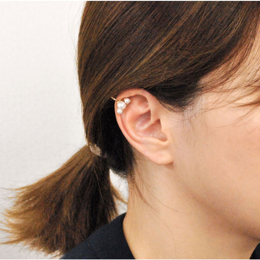 片耳用 クリップ式パールイヤーカフ 軟骨ピアスイヤリングゴールド
