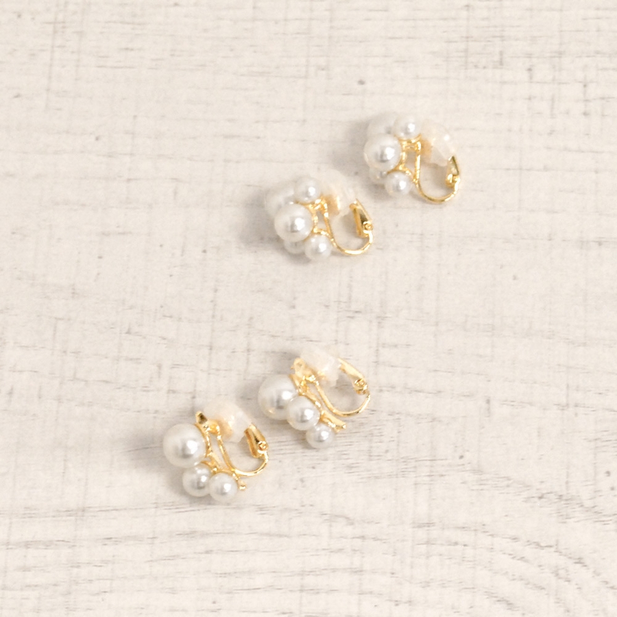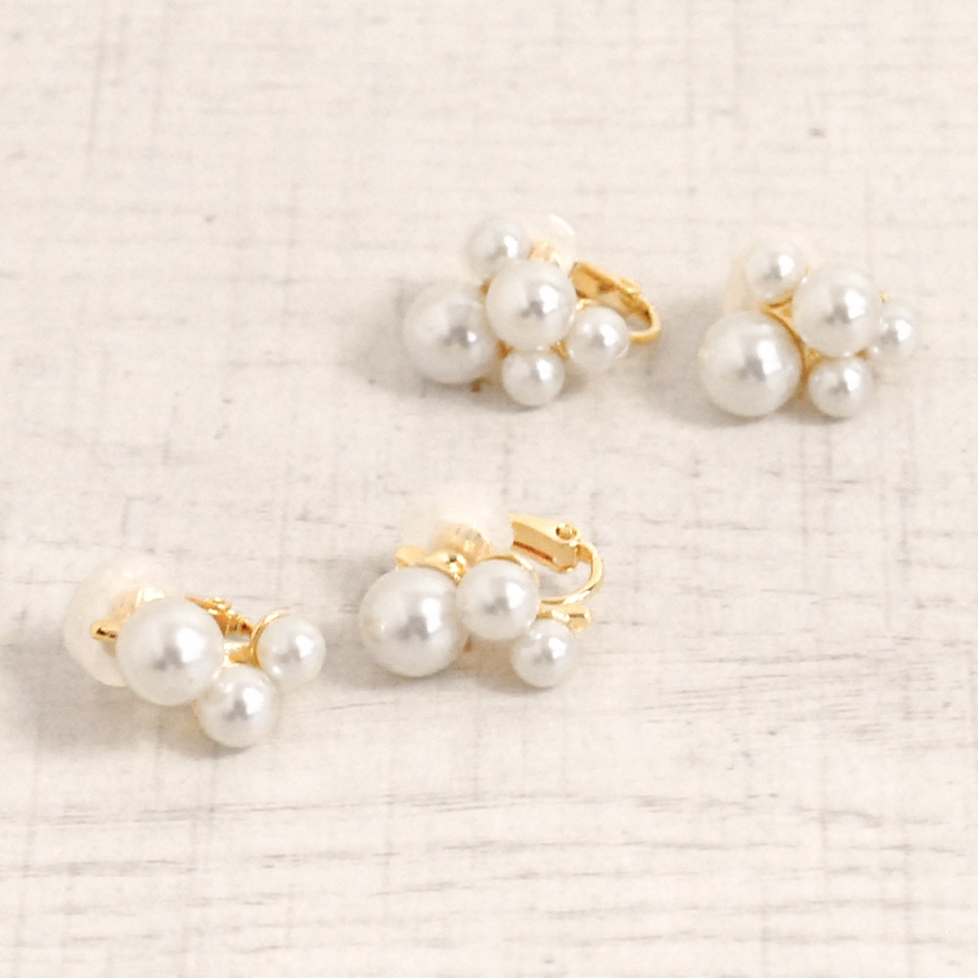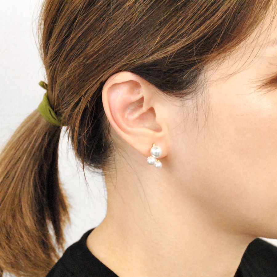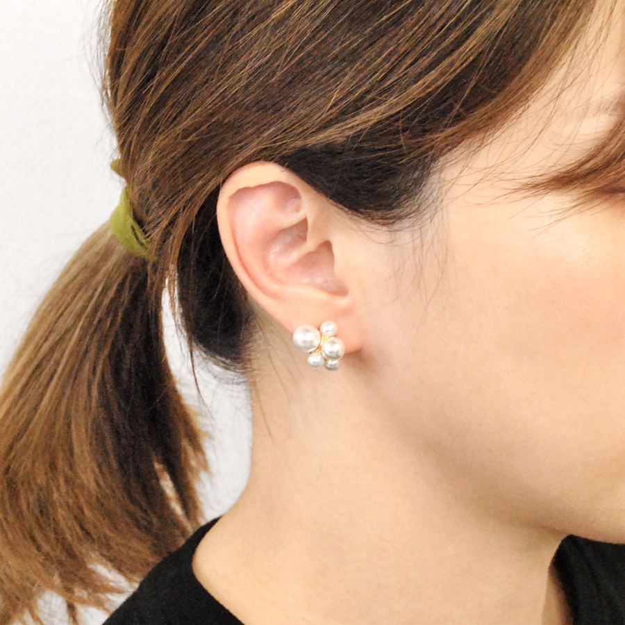 泡のように可愛いパールを散りばめたデザインイヤリング♪