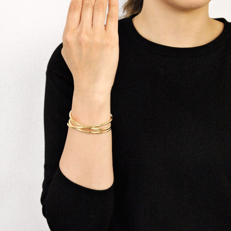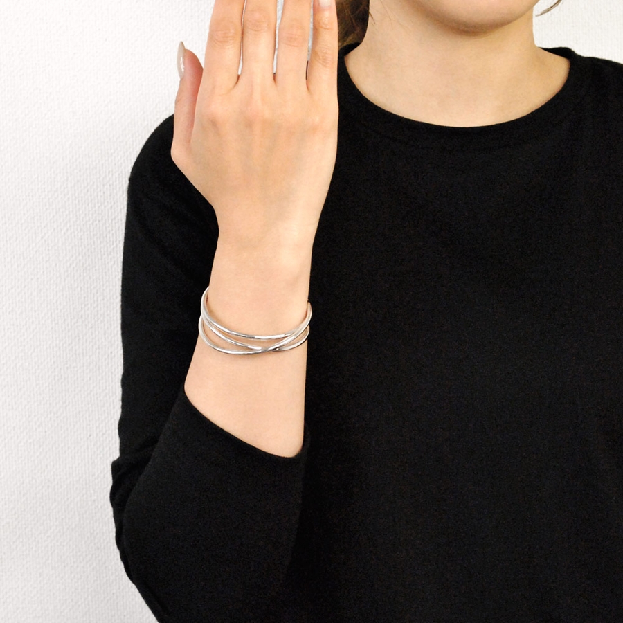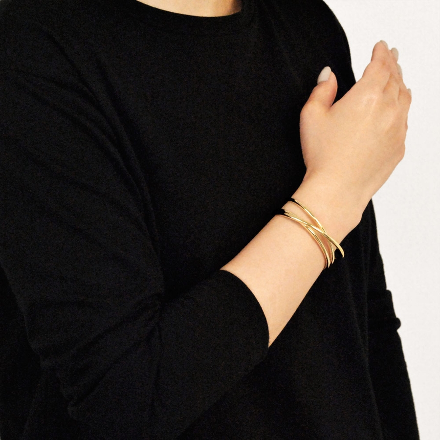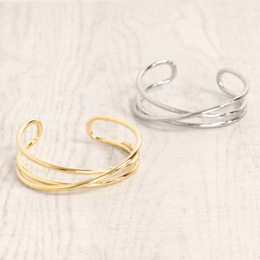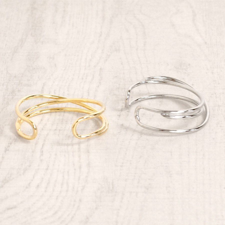 ワンストロークメタルバングルブレスレット シルバーゴールド変形 ブレス