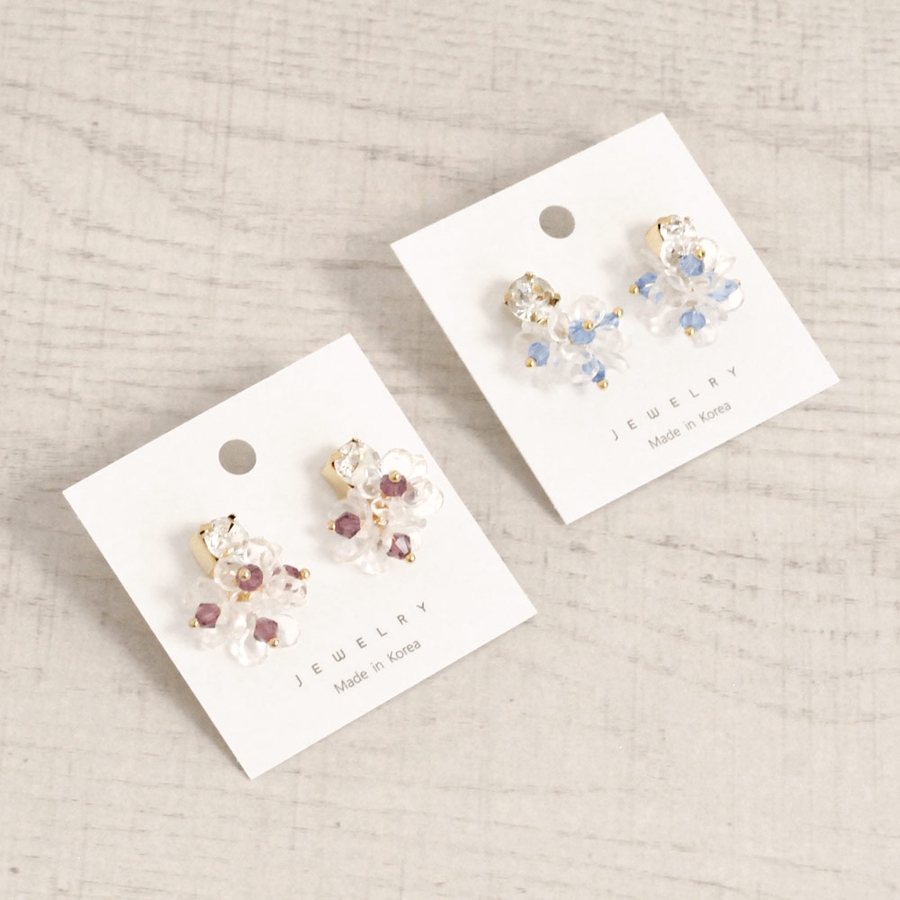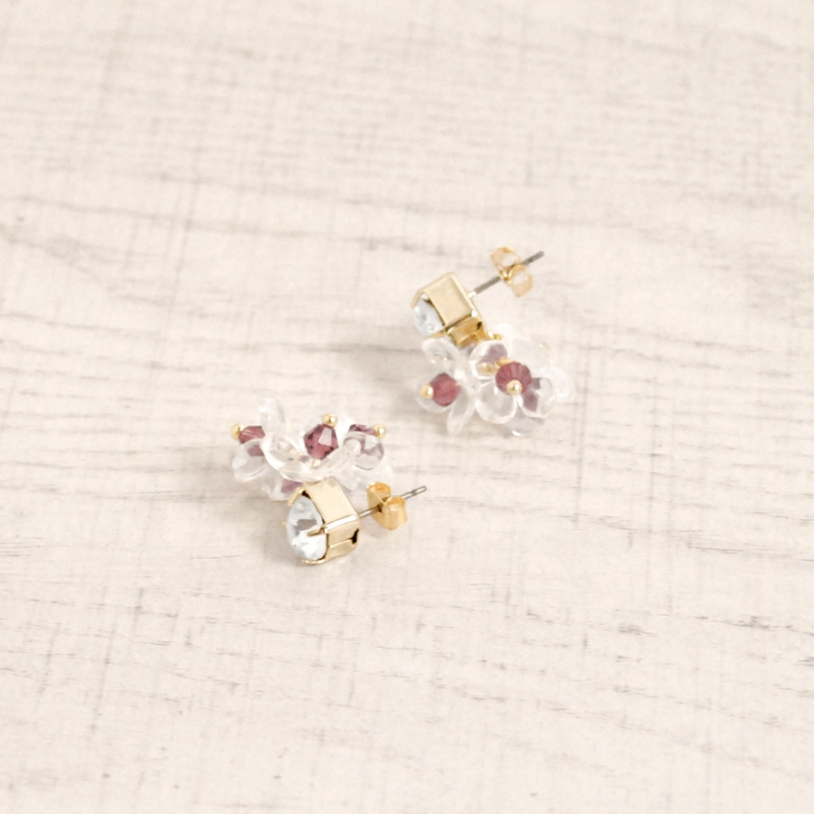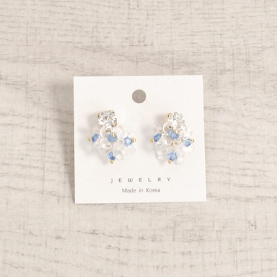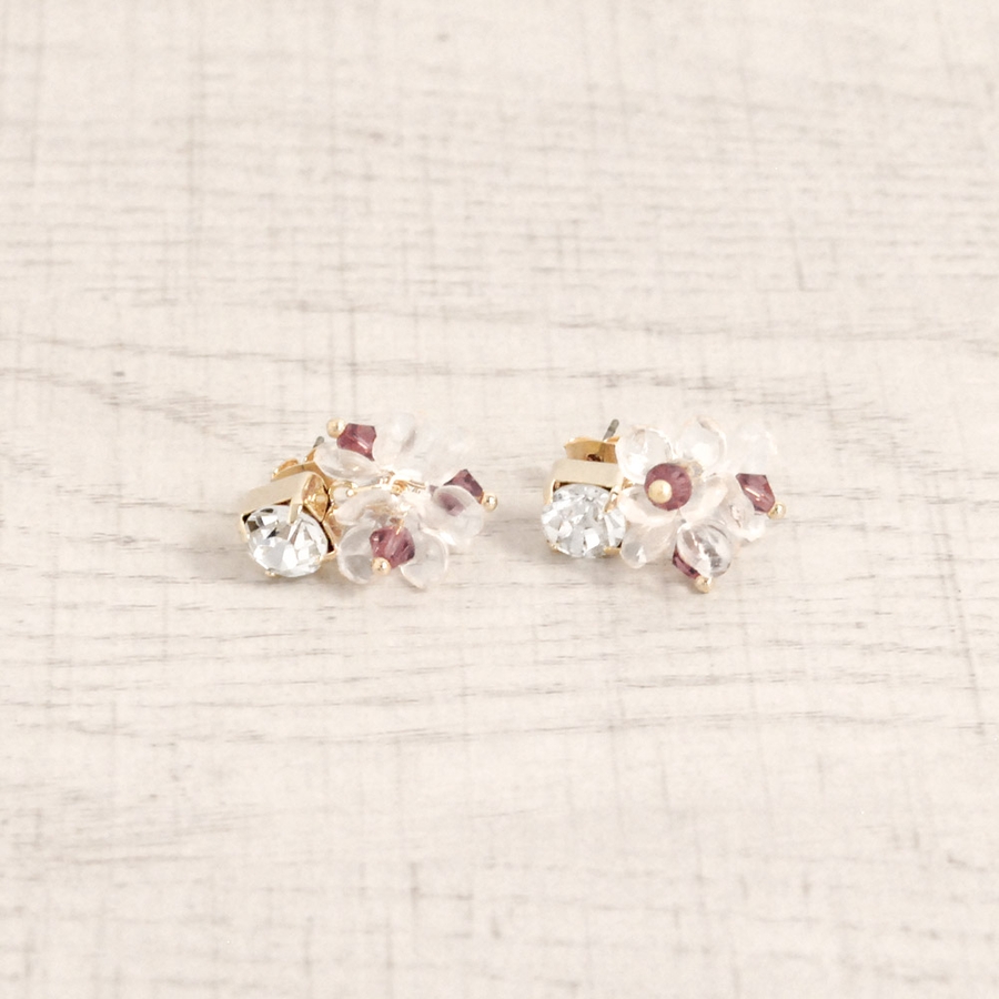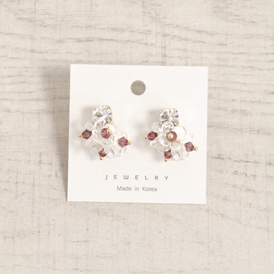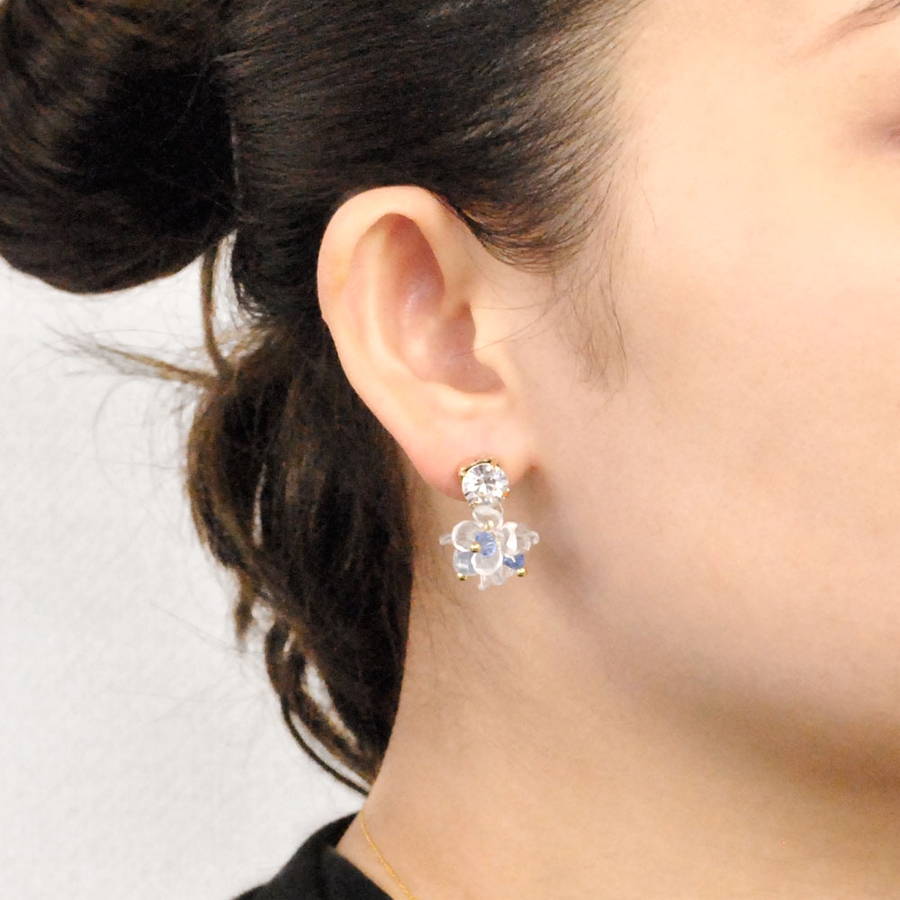 ボリュームフラワーストーン付ピアス 春夏花チタンポスト浴衣