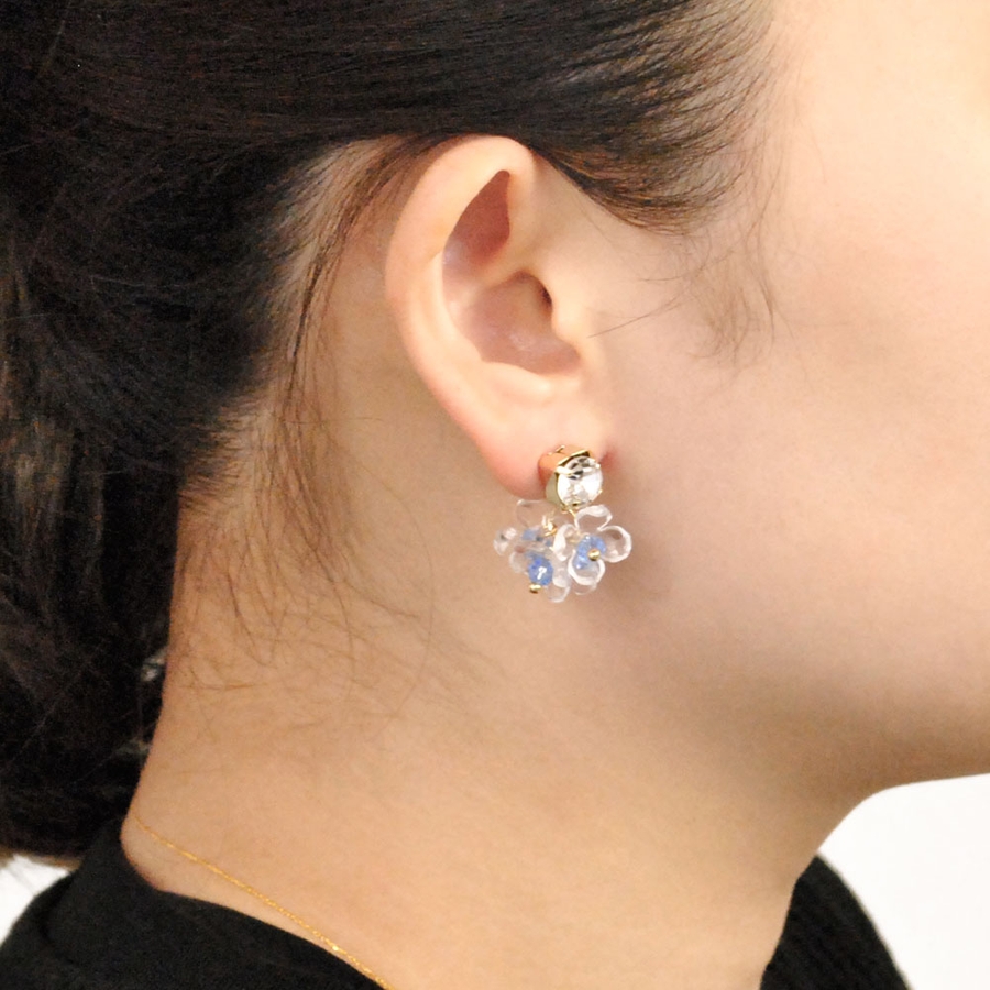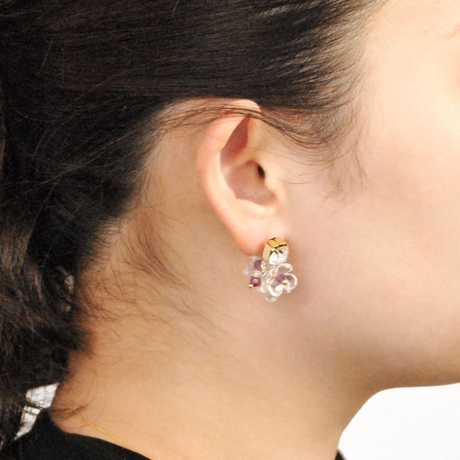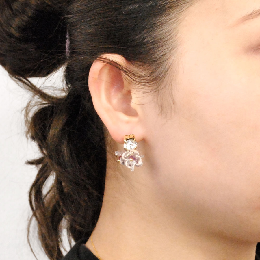 大粒のラインストーンとアクリルフラワーの透け感が、お顔回りを華やかに飾ってくれます☆パーティーシーンはもちろん、飾らない普段着のアクセントとしても大活躍間違いなしです◎