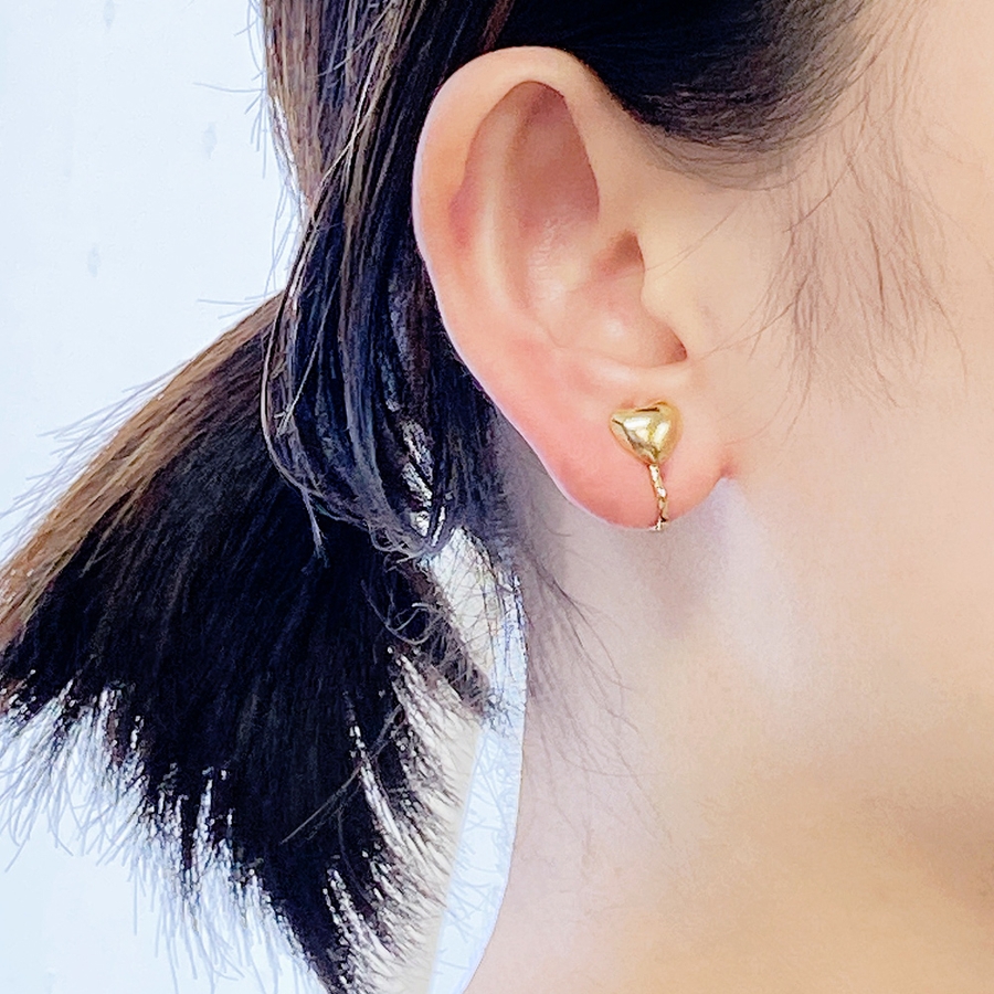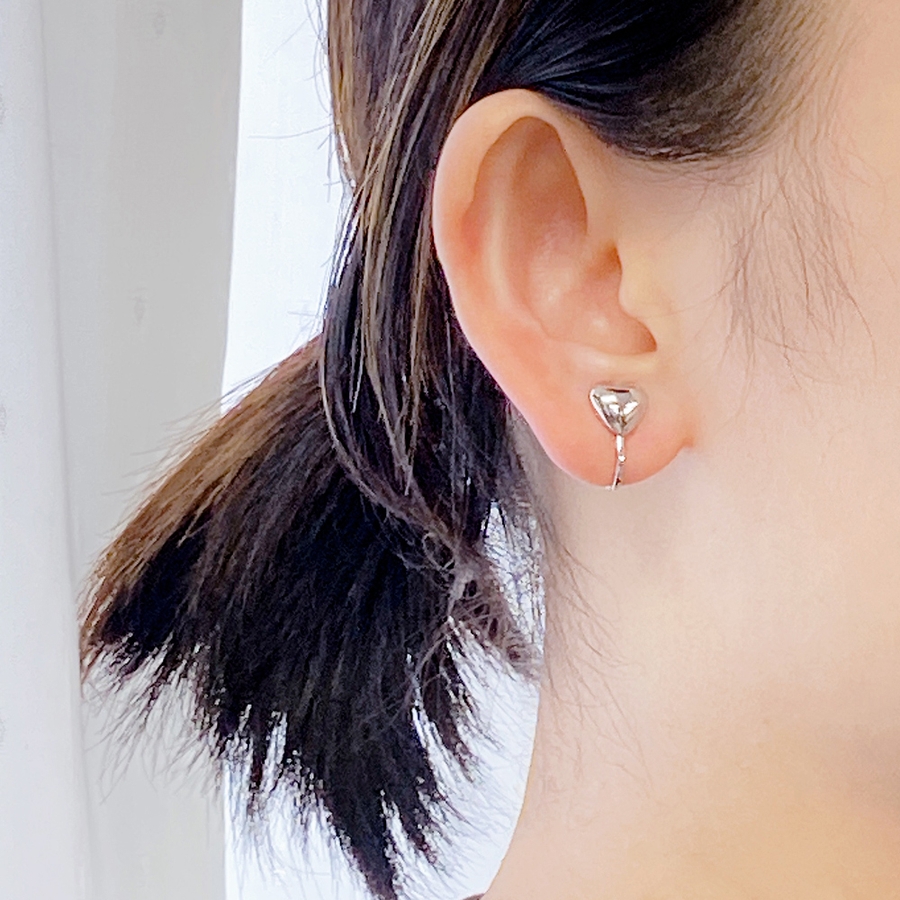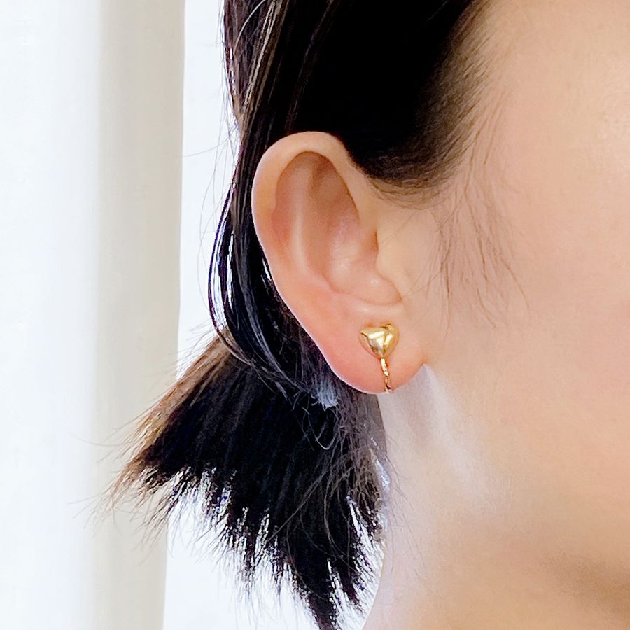 プランプミニハートイヤリング ノンホールピアスレディースシルバーゴールド