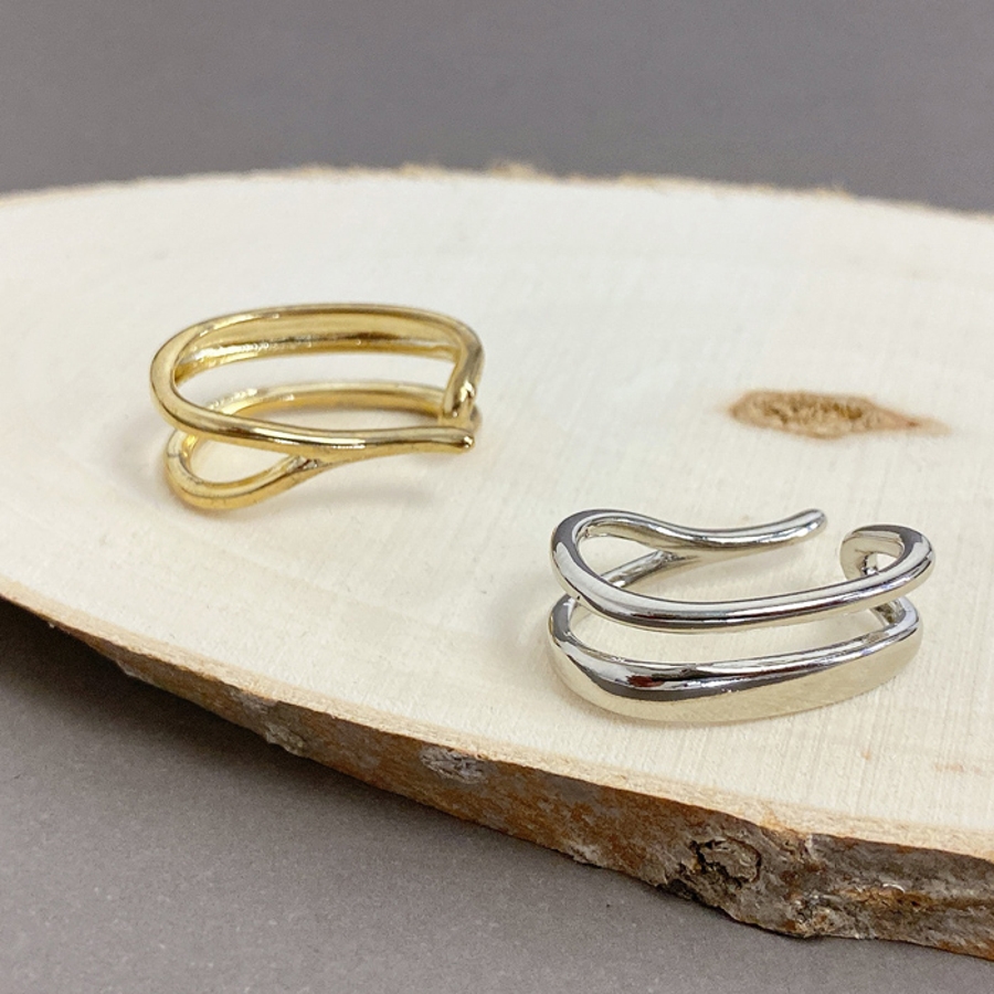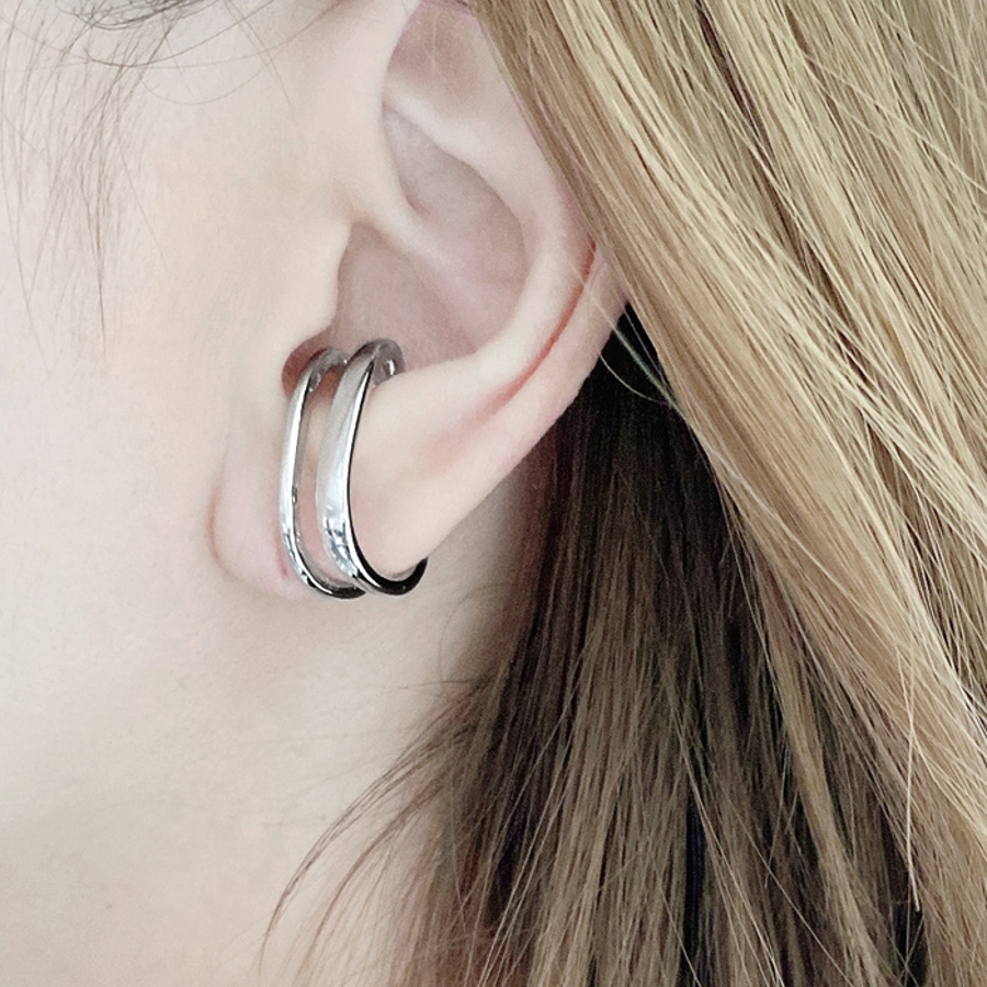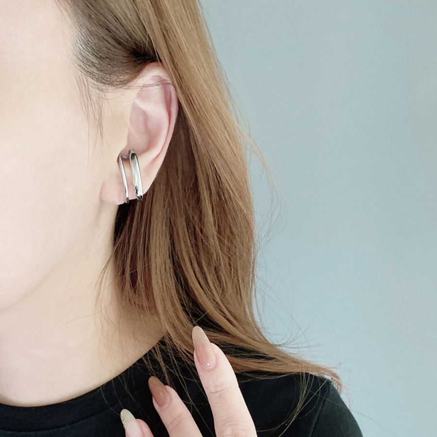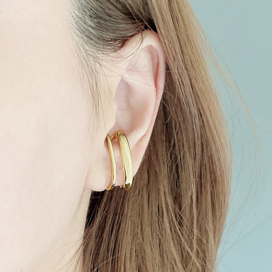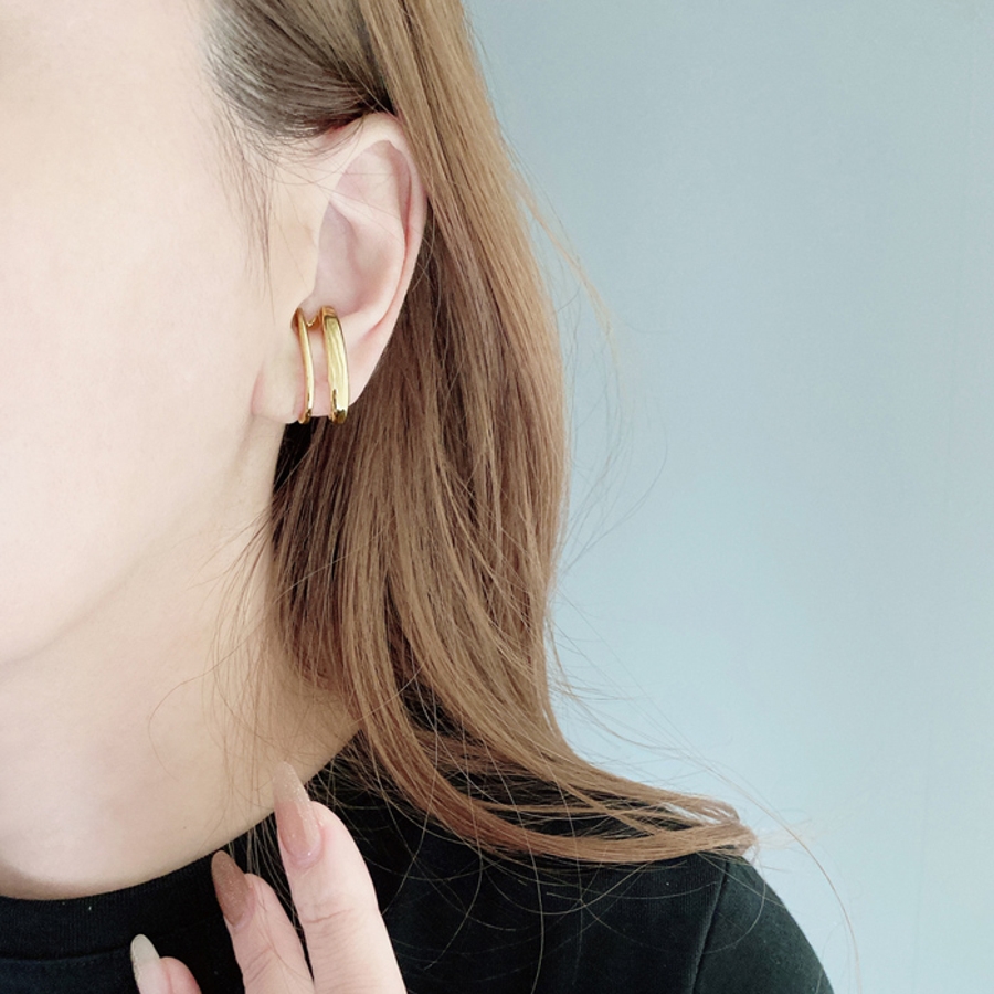 確かな存在感で耳元をぐっとオシャレにする、メタル2連ラインイヤーカフ。