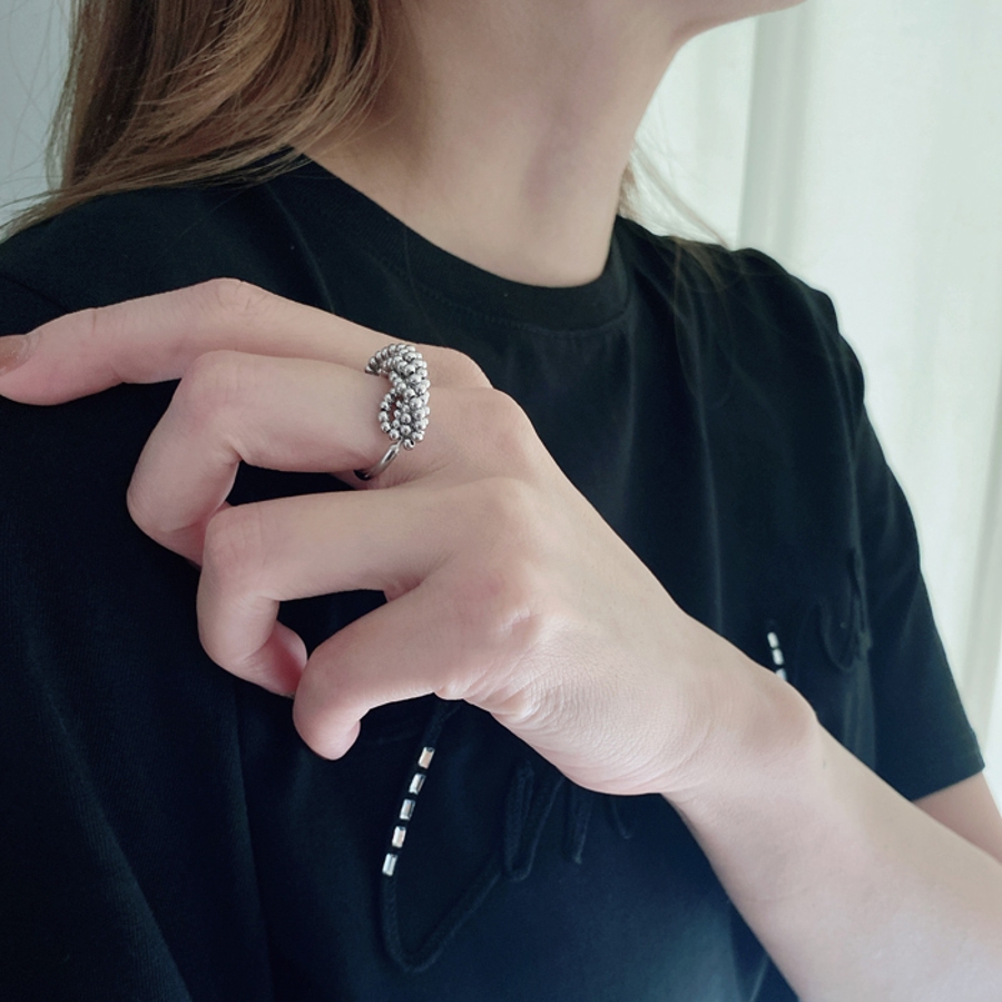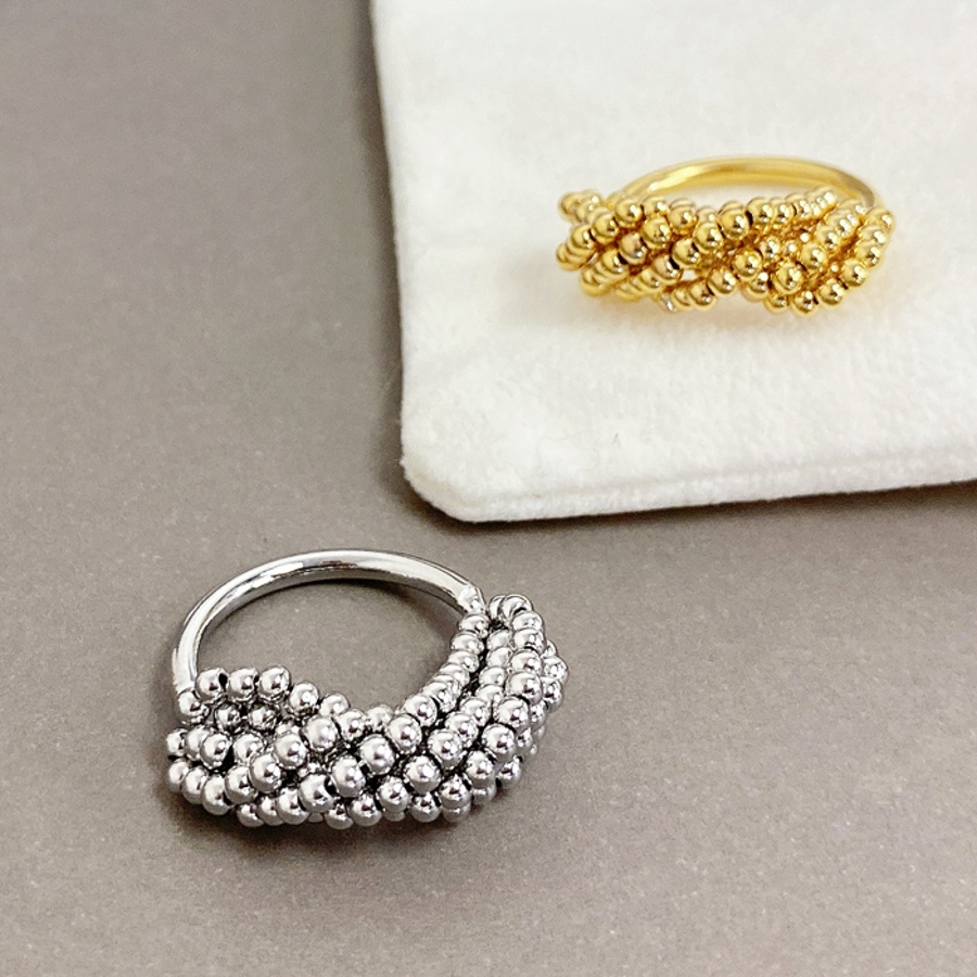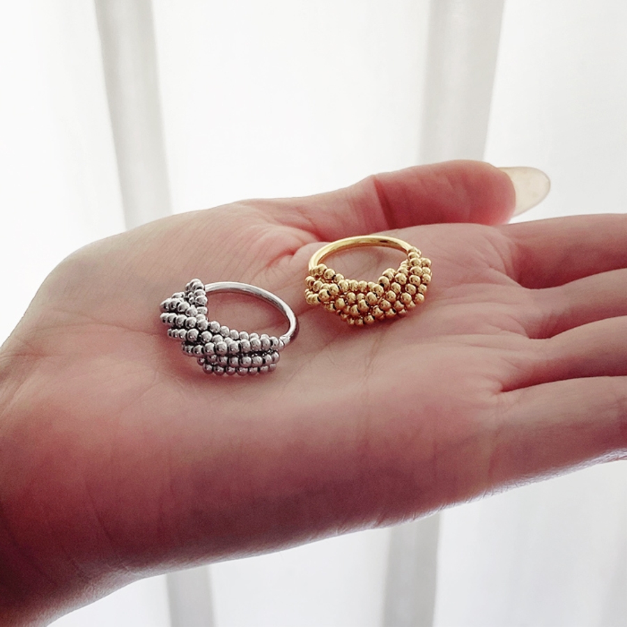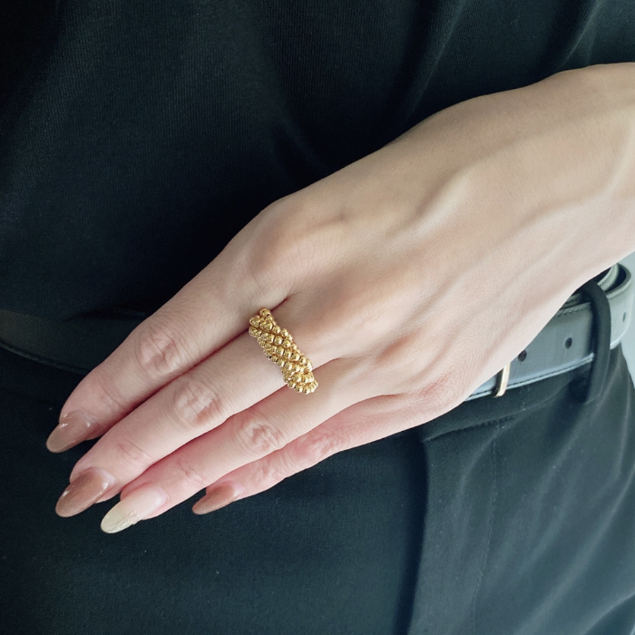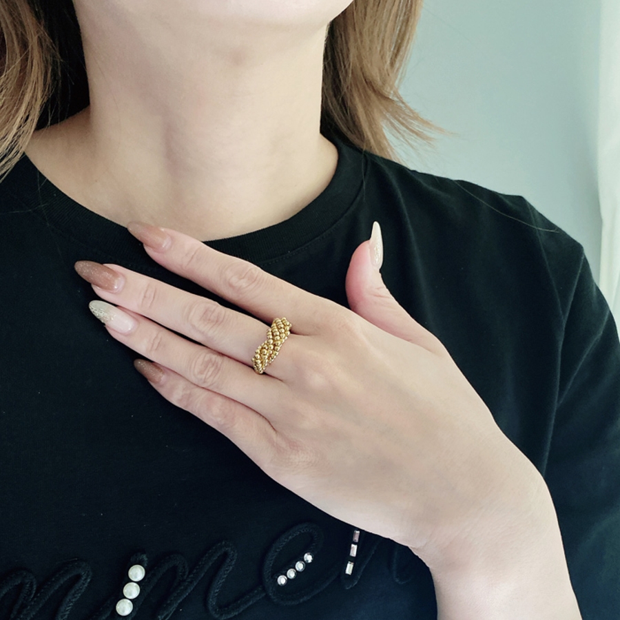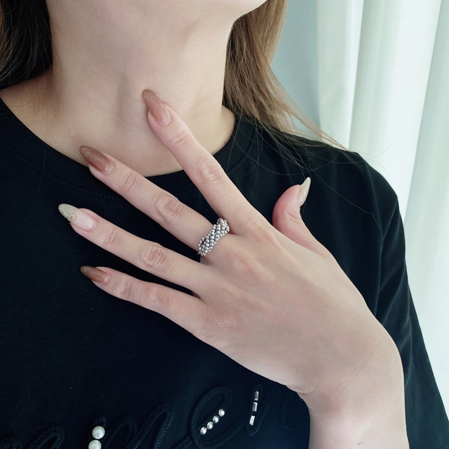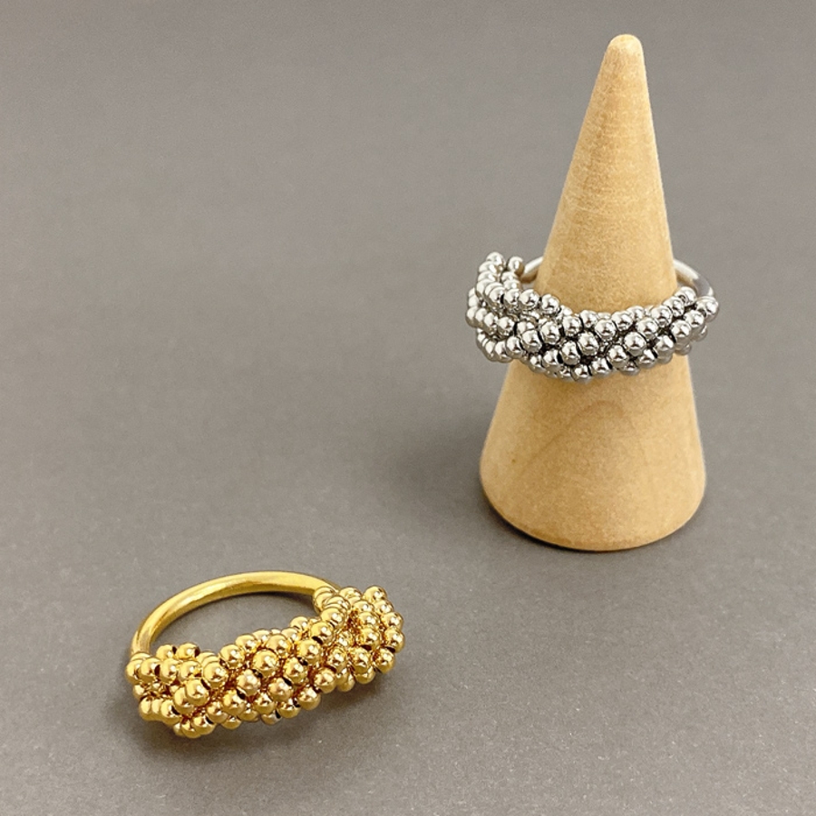 つぶつぶのテクスチャーが魅力的なメタルボールロールラインリング。