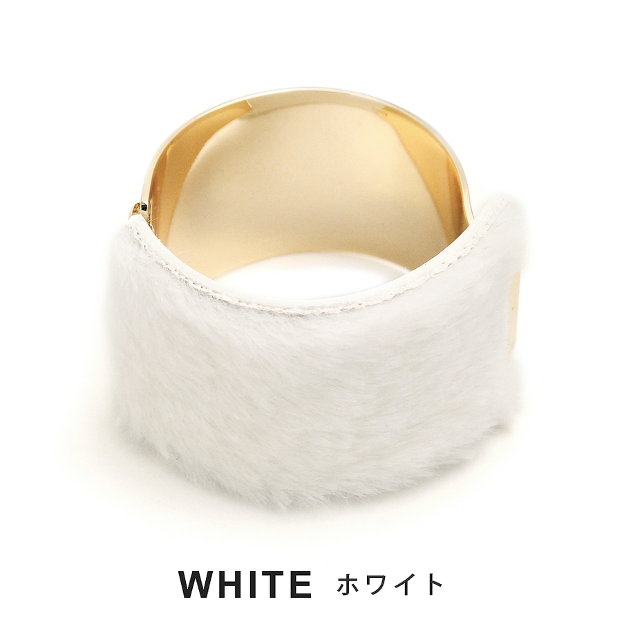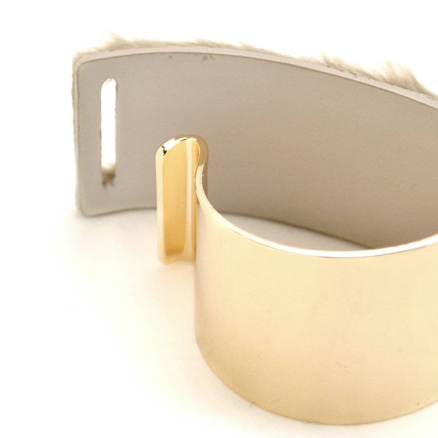 メタルカーブプレートファーブレスレット バングル フェイクファー