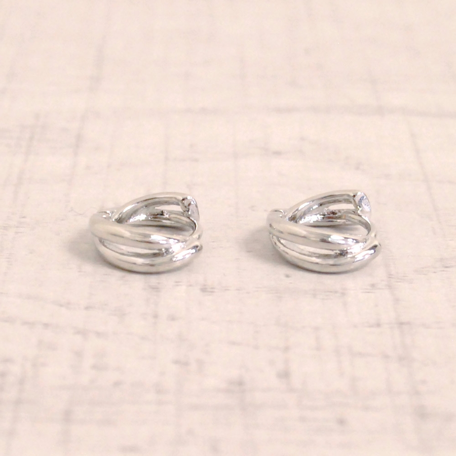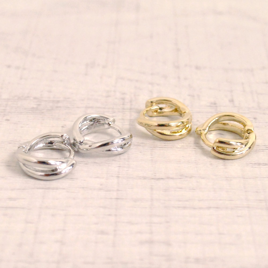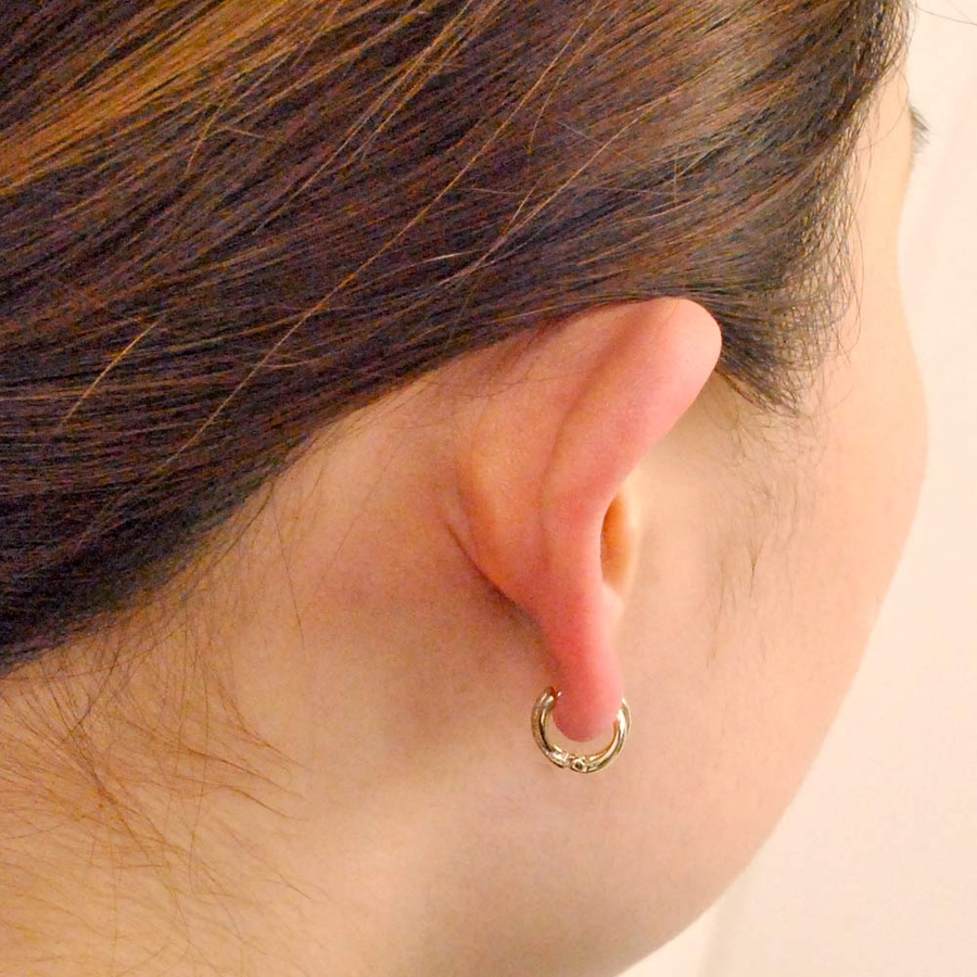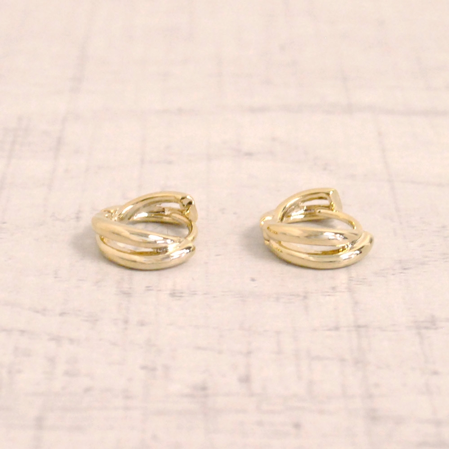 2連の艶のあるメタルが程よく存在感を持つ、ミニ2連ワンタッチフープピアス☆
