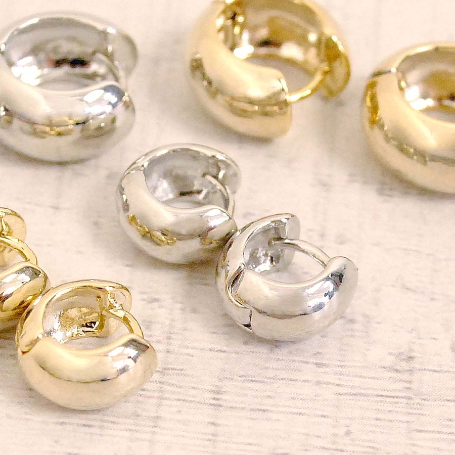 幅広ロールワンタッチフープピアス 開閉式プチプラメタルシルバーゴールド