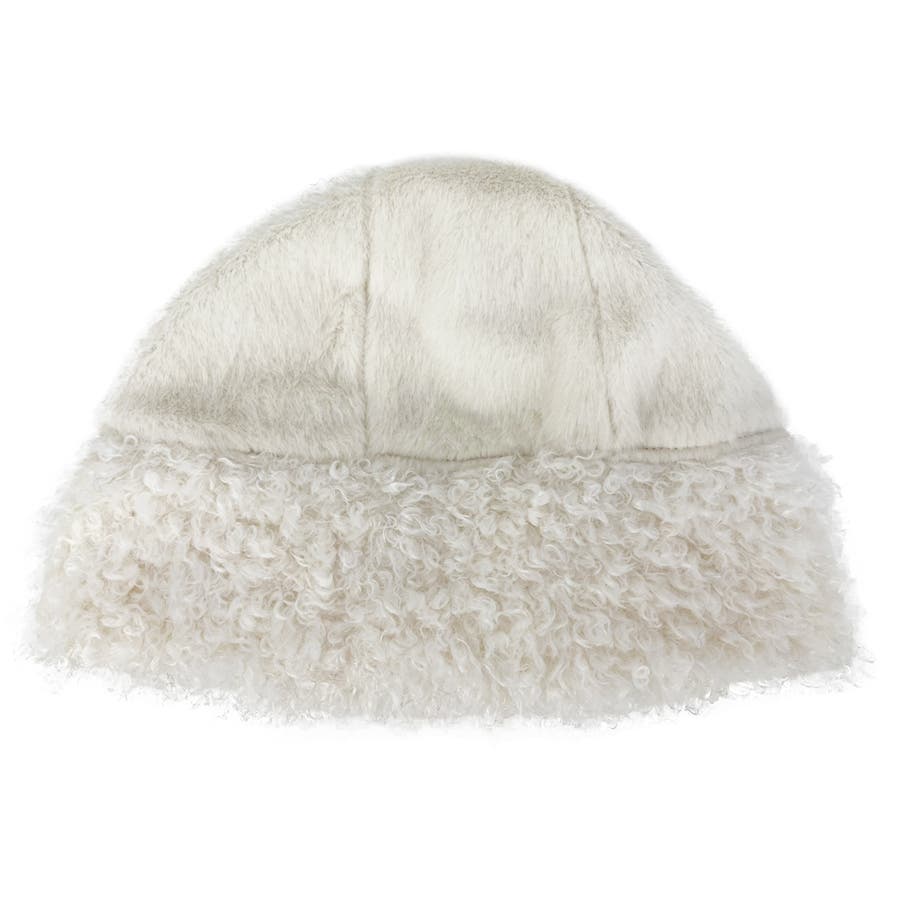 ふんわりもこもこのボア×ファーのワッチやトーク帽で使える2WAYワッチ。ストレートにかぶるとトップにボリューム感を持たせてかぶれる。ナチュラルコーデやフェミニンコーデに合わせるとかわいさUP!ボアの所を折ってかぶると、甘さ控えめのカジュアルコーデやシンプルなコーデに合わせてかぶれる。幅広いコーデでかぶれるアイテムです。《サイズ》高さ約26cm、頭周り約61cm