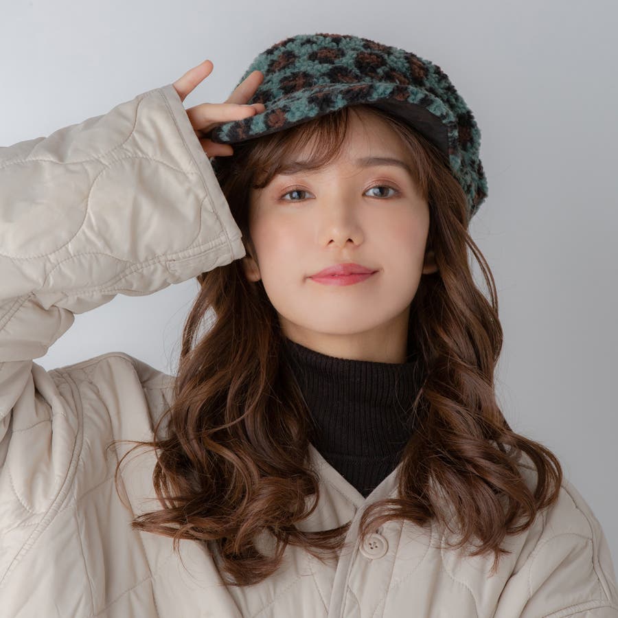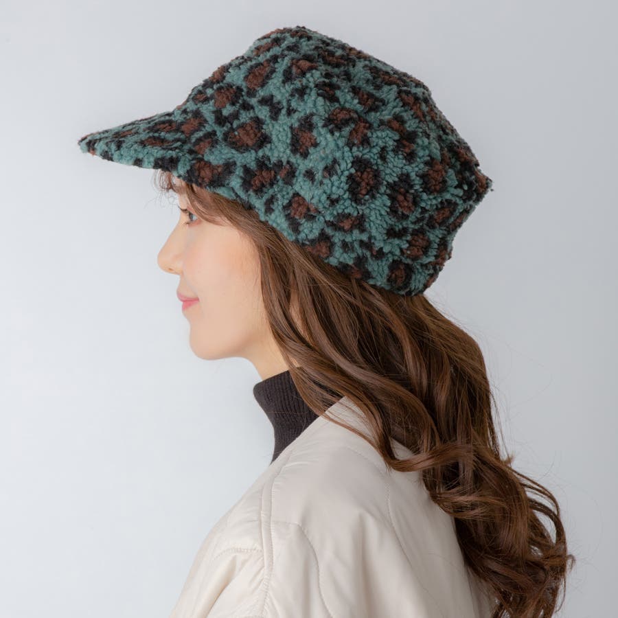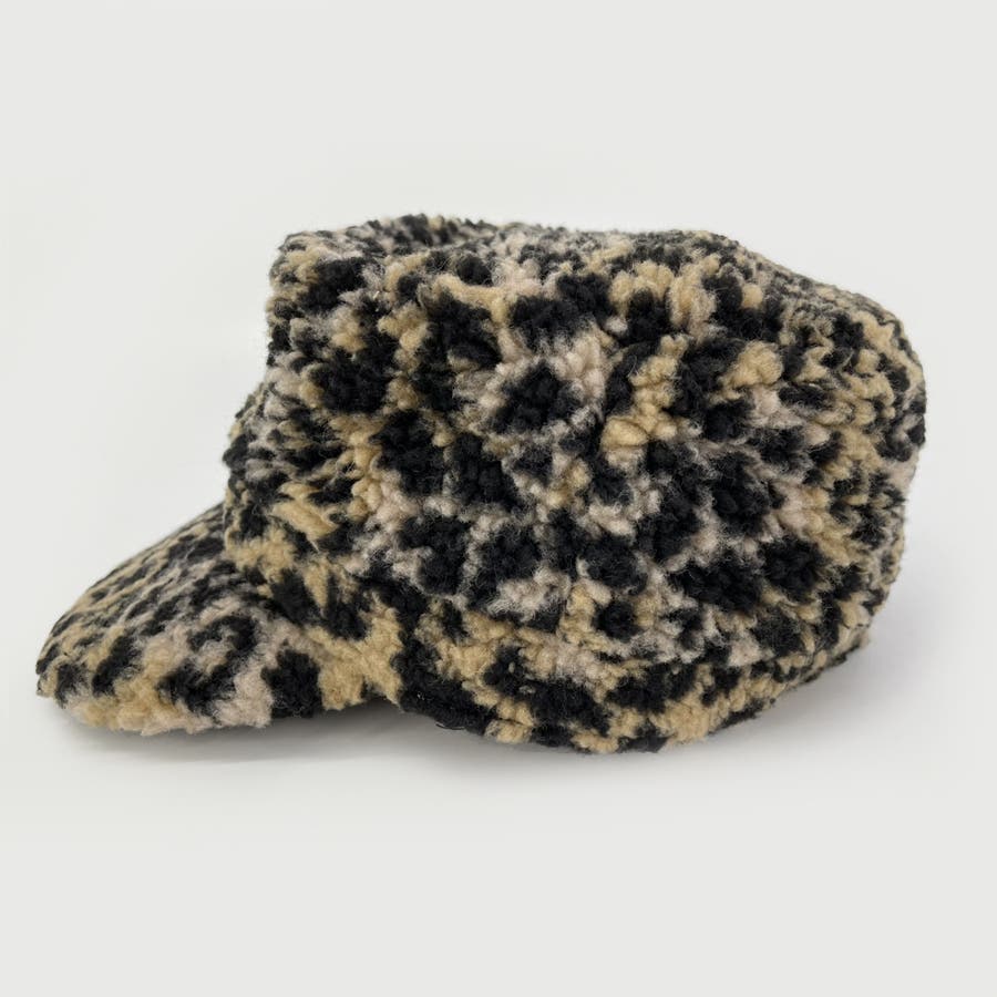 ヒョウ柄 ボアワークキャップ