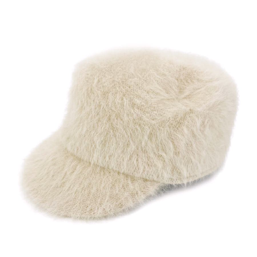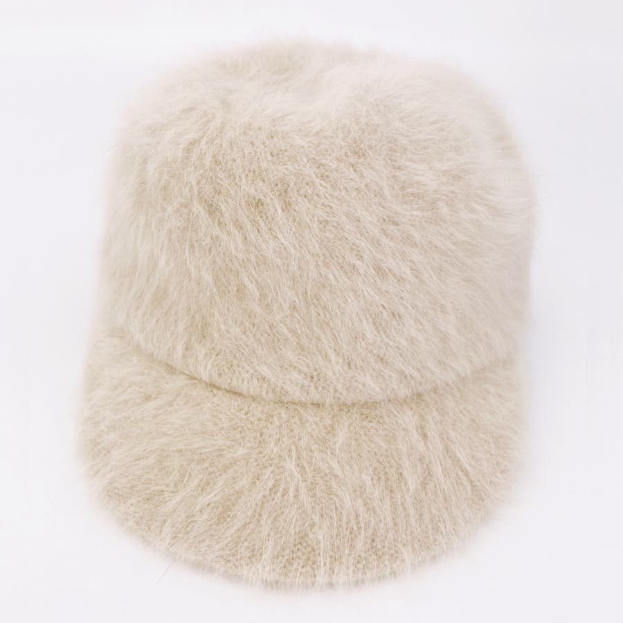 毛足が長めのアンゴラキャップです。すっきりとしたシルエットなのでニットやダウンなど、ボリュームが出やすいアイテムにも相性よく合わせていただけます。サイズ調節可能《サイズ》高さ約10cm、頭周り約56cm、つば 約5cm