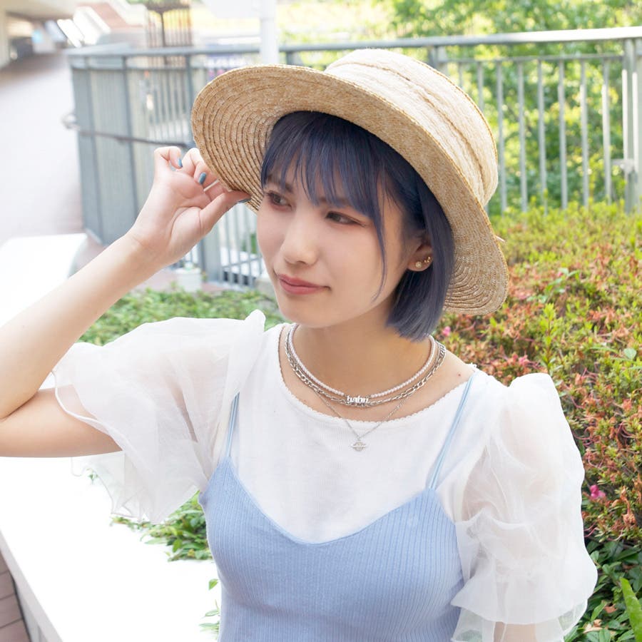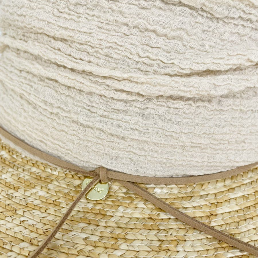 伸縮性のある布と麦わらのコンビは頭の高さにフィットしてかぶり心地も◎