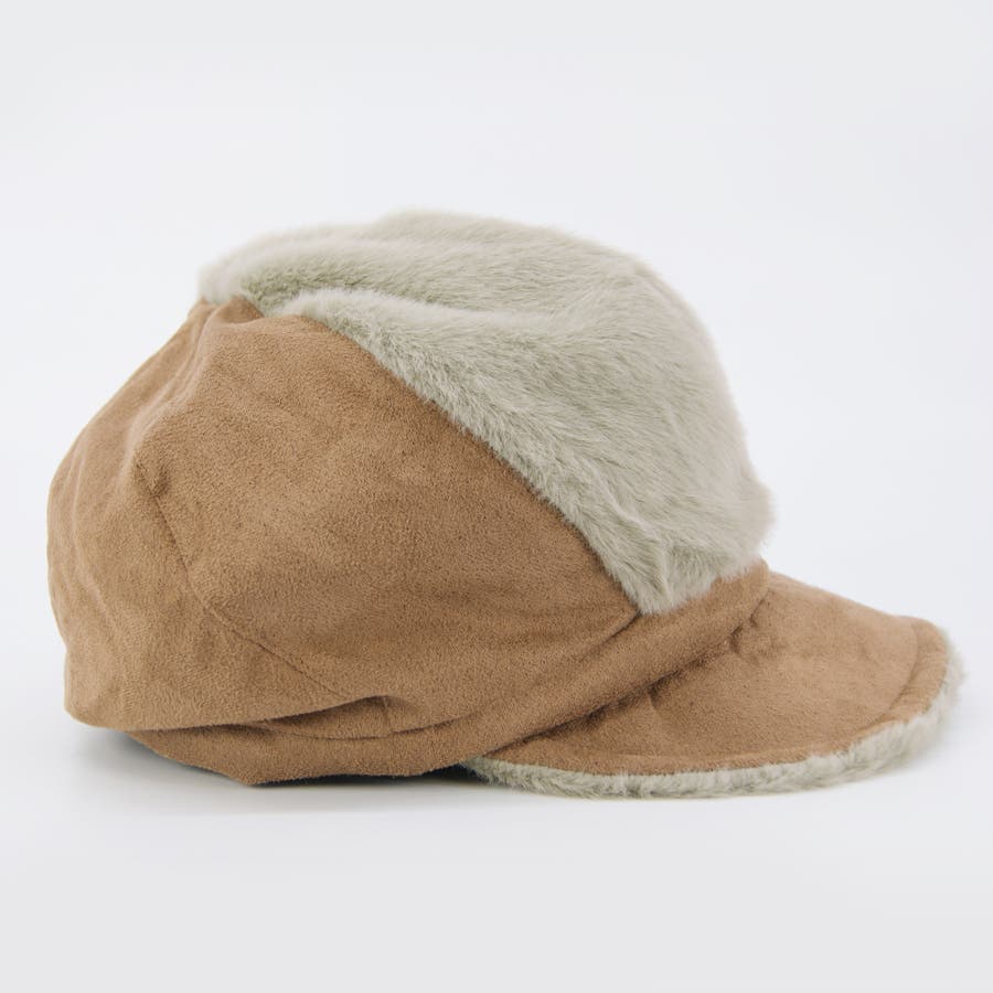 ふんわりとしたトップでスエードとファーのバイカラーで見た角度で印象が変わります。トップを後ろに引くとボリュームダウンしてかかぶれます。つば裏がファーになってるのでお顔も明るい雰囲気で、つばもやわらかくかぶるとフェイスラインにフィットしてかぶれます。大人カジュアルやかわいいナチュラルコーデにぴったり!お出かけやご旅行のUVケアにもオススメです。サイズ調節可能(2cmほど小さくできます)《サイズ》高さ約15cm、頭周り約58.5cm つば約6cm