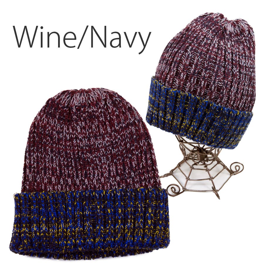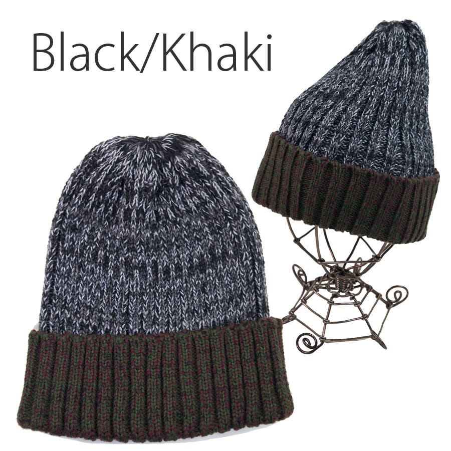 バイカラーmixニットキャップ 秋冬 男女兼用
