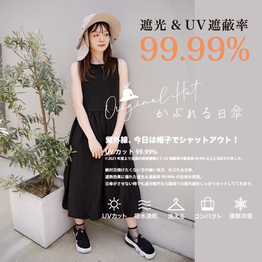 つばの内部に1級遮光生地使用、紫外線からやさしく守ります