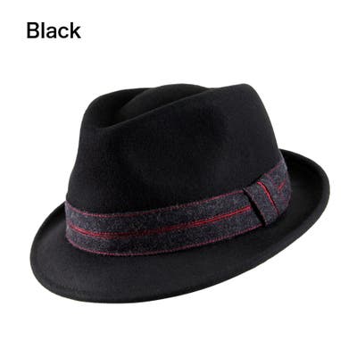 ベルトのラインがポイントのフェルト中折ハットです。さりげないラインの色がちょっと目を引くデザインになってます。サイズ調節可 material:wool100%Size:58,5cm Made in China