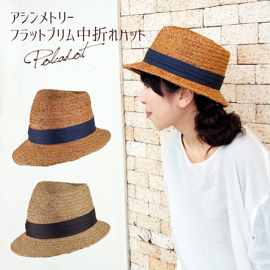 polcadot アシンメトリーフラットブリム中折れハット