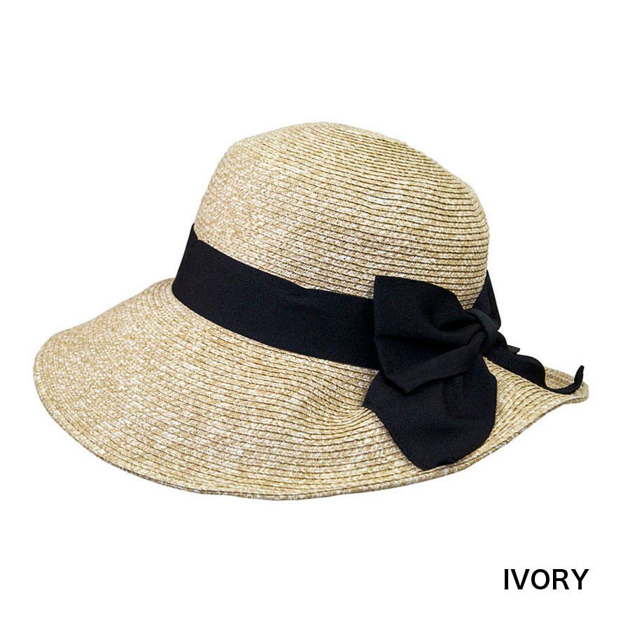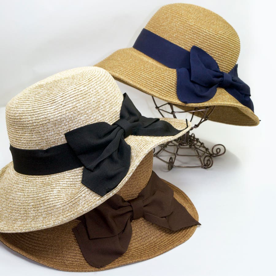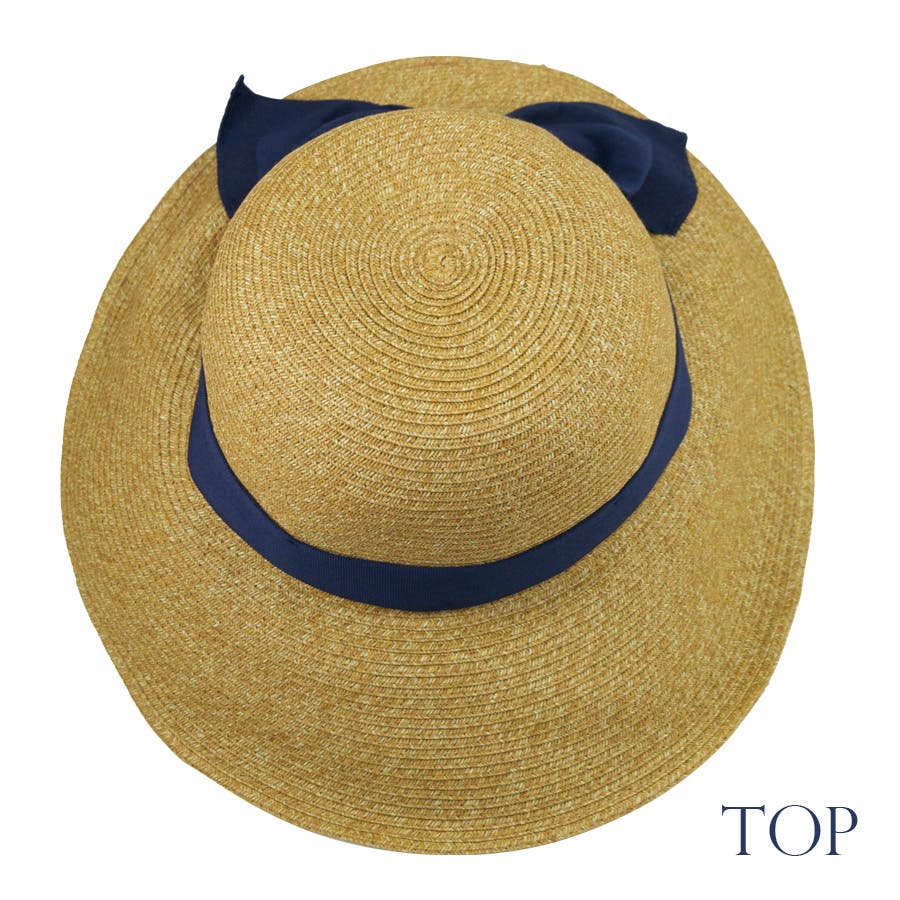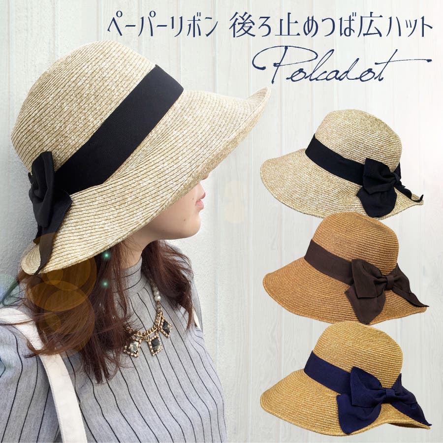polcadot ペーパーリボン 後ろ止めつば広ハット