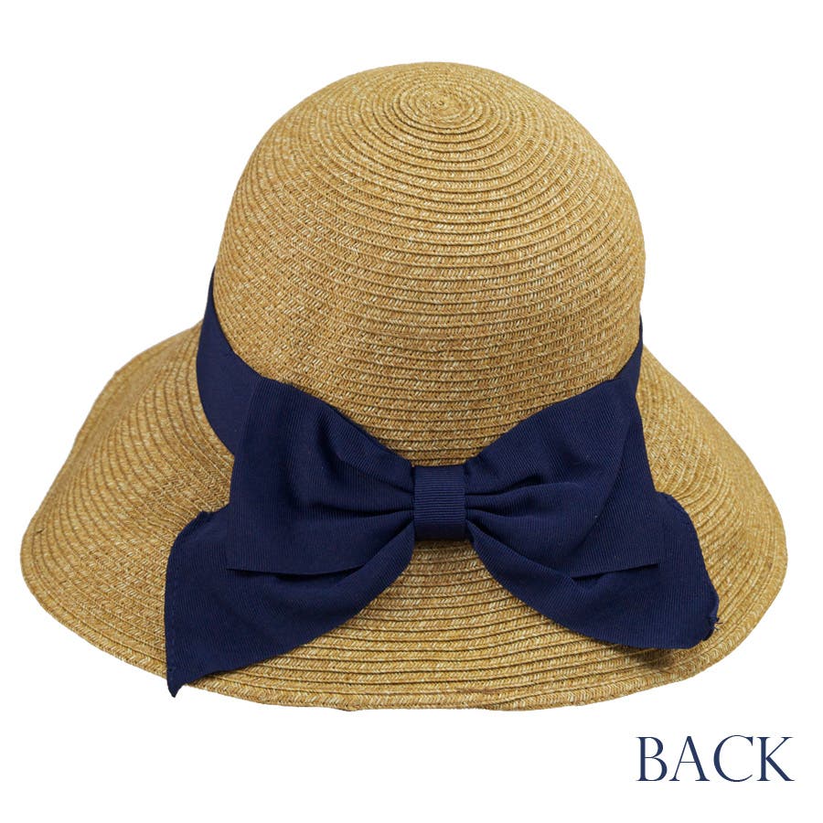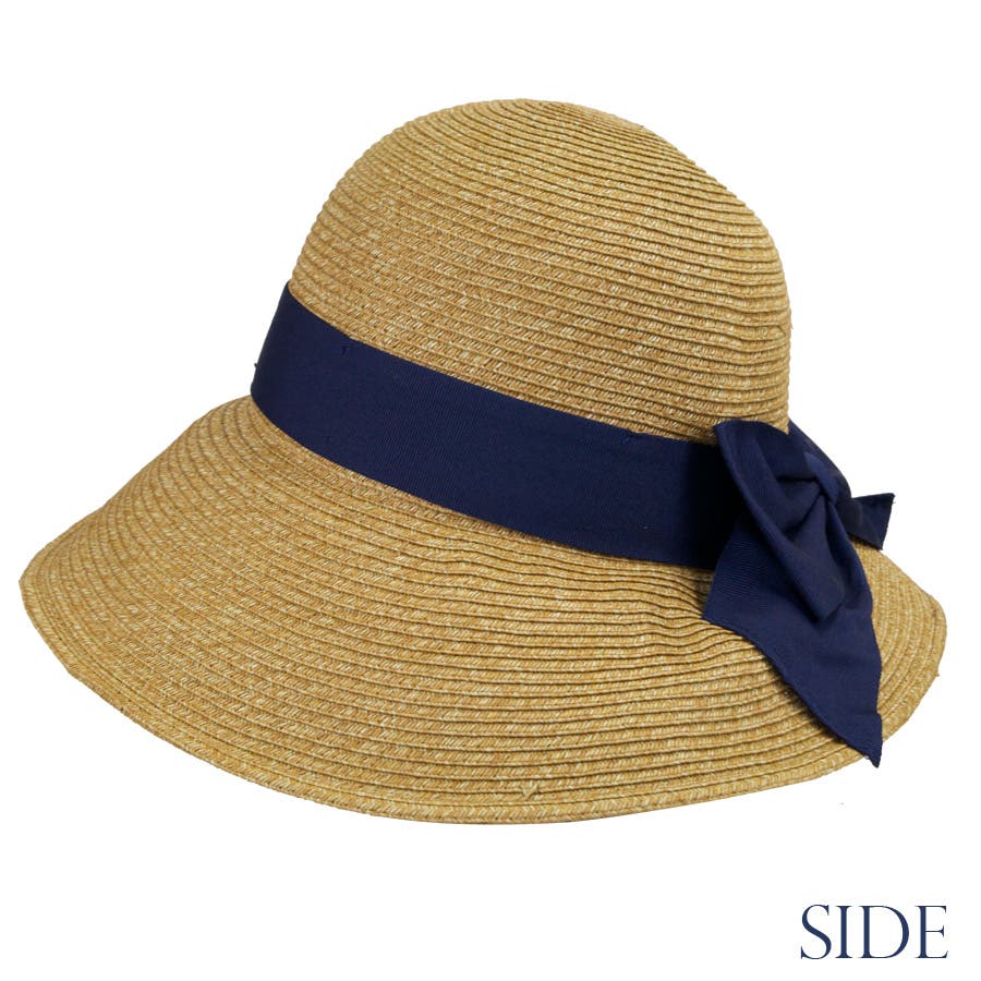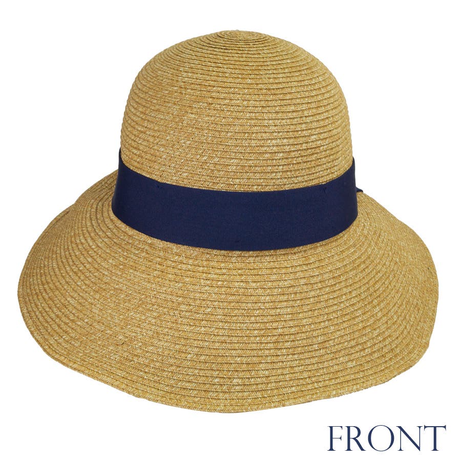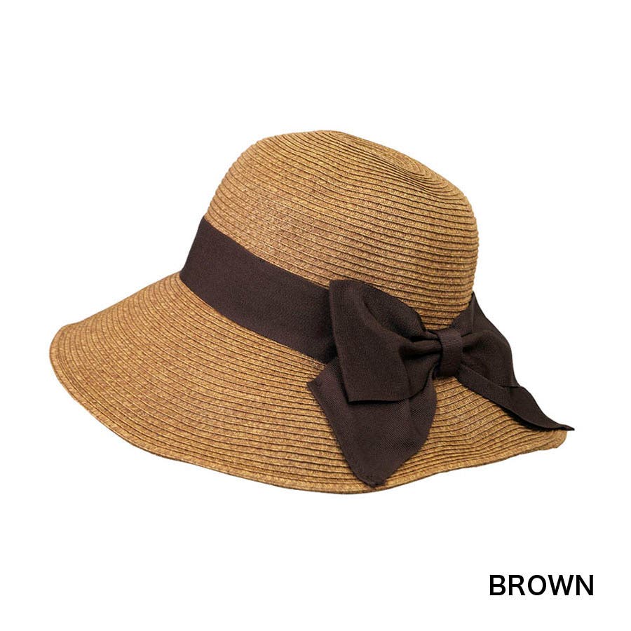 polcadot ペーパーリボン 後ろ止めつば広ハット