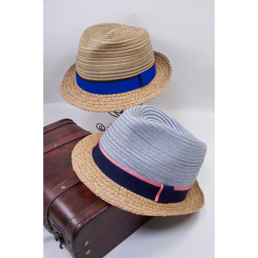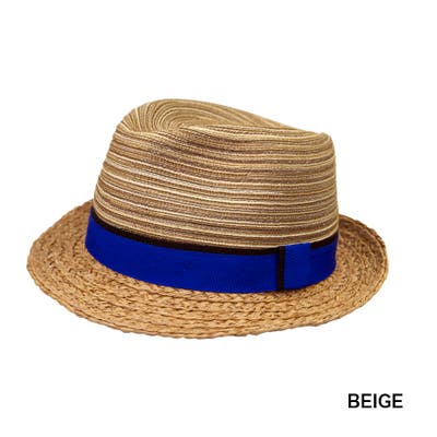 ペーパーxラフィア素材のお洒落な中折れです!涼しげな色使いや素材感がポイント。カジュアルからスポーティーなコーデ、ユニセックスで使えます*サイズ調節可 Size: 59cm