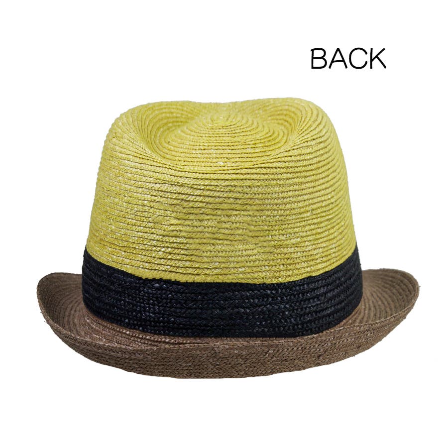 3色の色使いが絶妙にかっこいい中折ハットです。色も鮮やかで個性的!ベーシックなデザインに飽きた方にオススメです。Size:59cm サイズ調節有