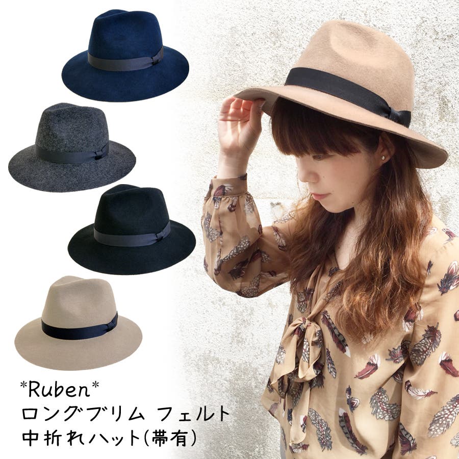 Rubenロングブリム フェルト中折れハット 帽子