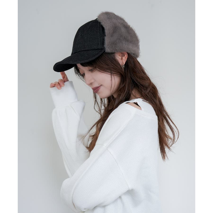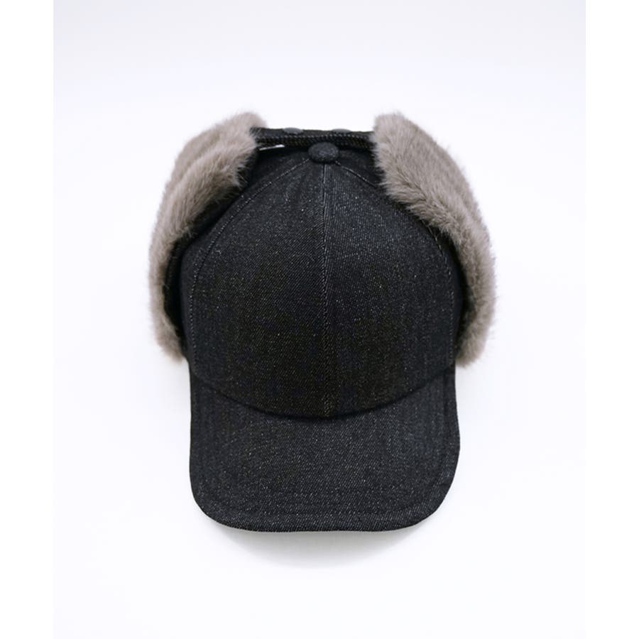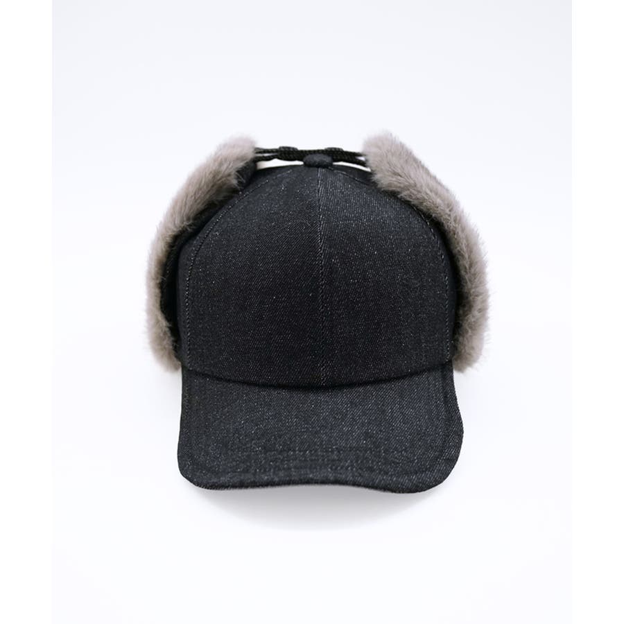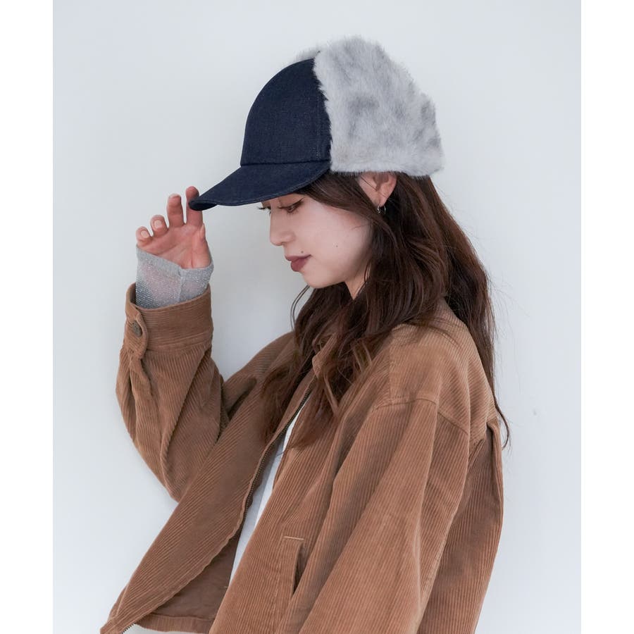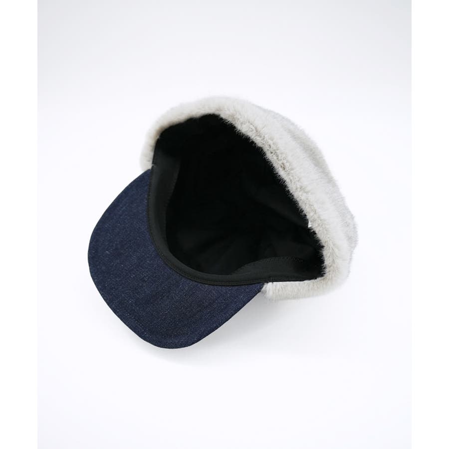 デニム素材の本体に、ふんわりしたサイドファーを組み合わせたイヤーカバーキャップ。