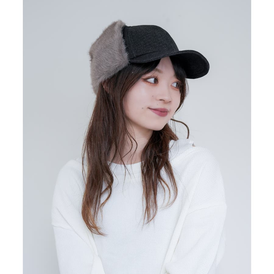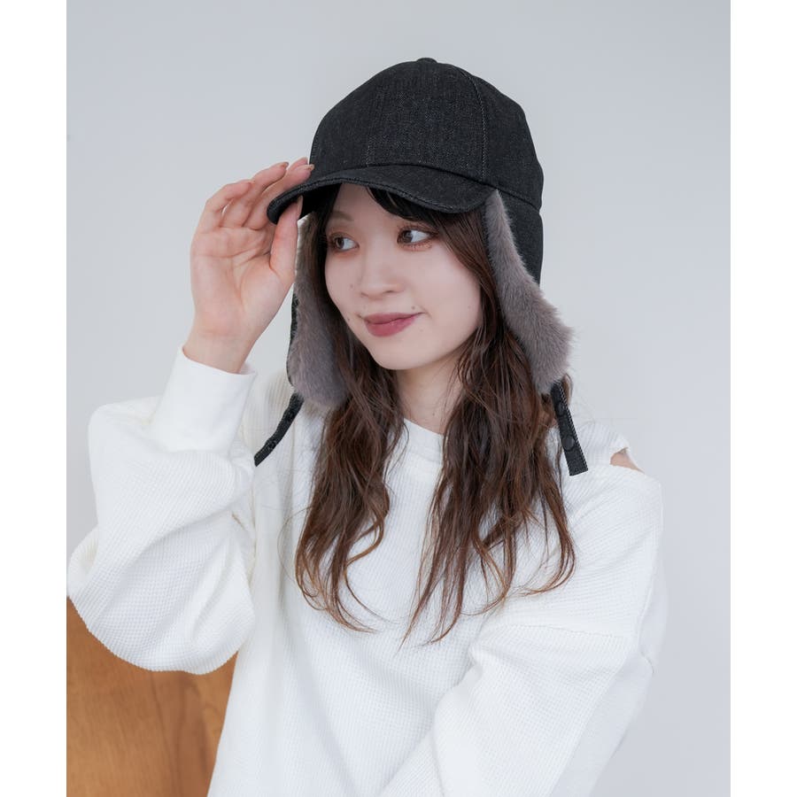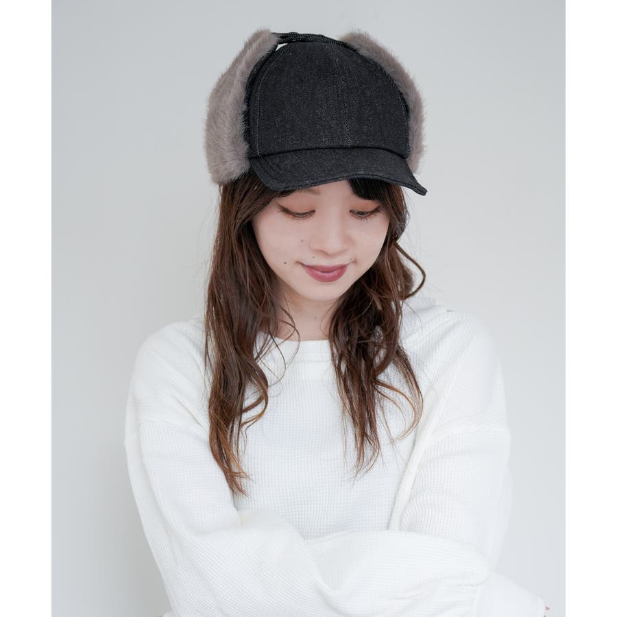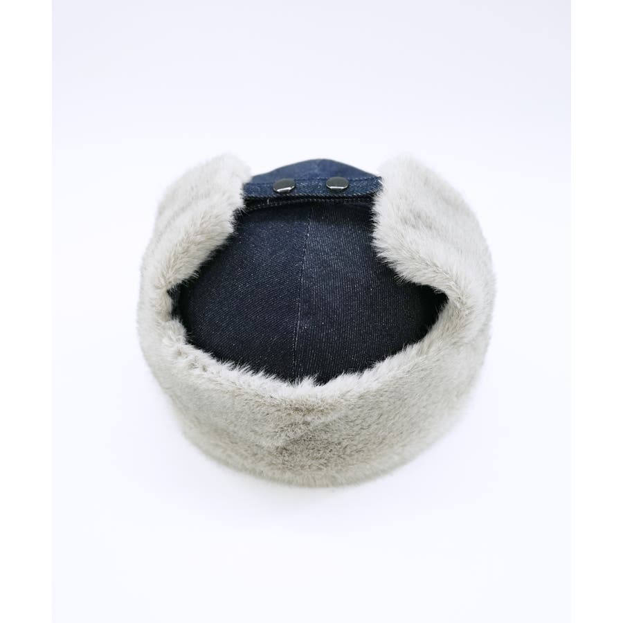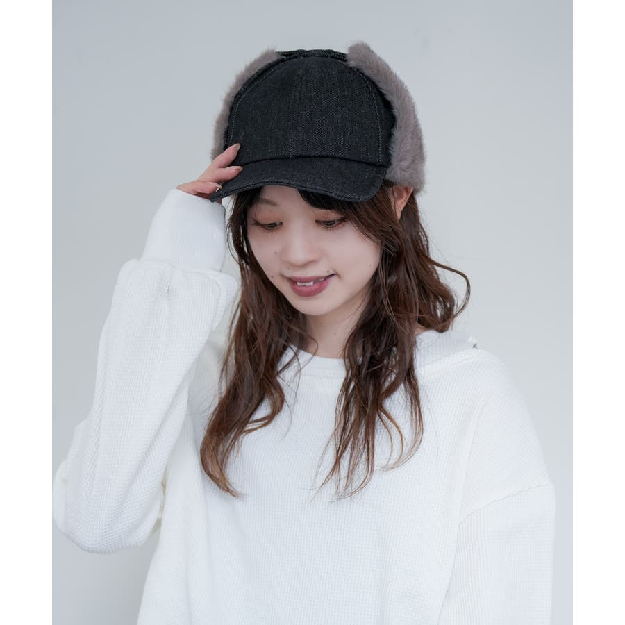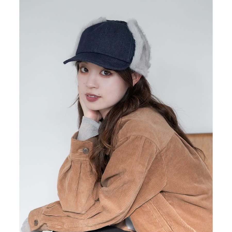 デニム素材の本体に、ふんわりしたサイドファーを組み合わせたイヤーカバーキャップ。