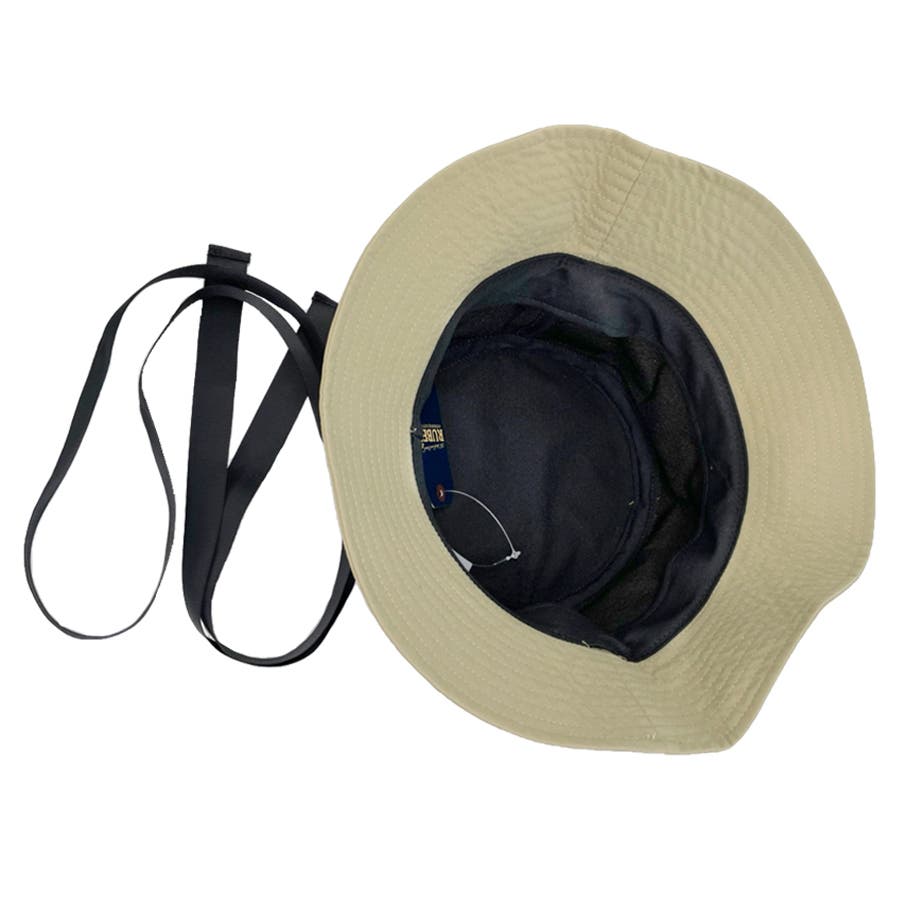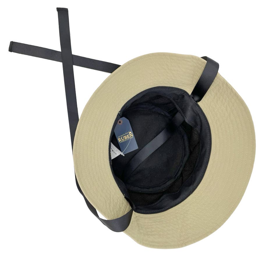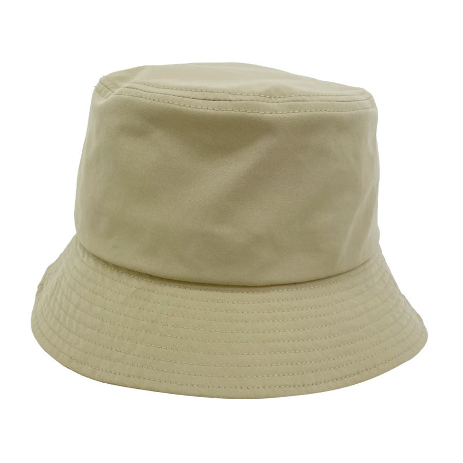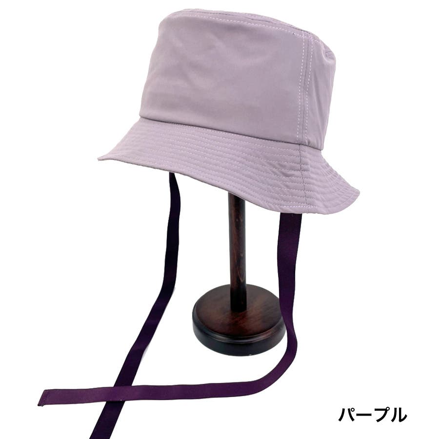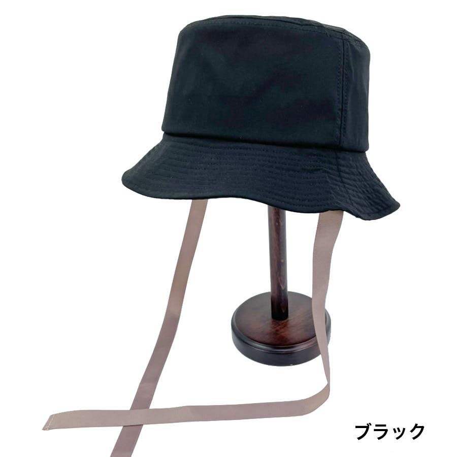 シンプルなバケットハットにリボンストラップを。おしゃれも実用性もこれ1つで完成。人気のバケットハットに今年らしいリボンストラップがつきました。結ばずに垂らしてフェミニンな雰囲気に。結んで風に飛ばないようにすることも。またリボンは取り外し可能なので定番バケットハットとしてもかぶって頂けます。飛ばない帽子が欲しいけどスポーティーな紐付き帽子に抵抗のある方、定番のバケットハットがかっこ良くなりすぎてコーデに合わない方にもオススメです。内側タグの裏にサイズ調整アジャスターが付いているので基本サイズから小さく出来ます。