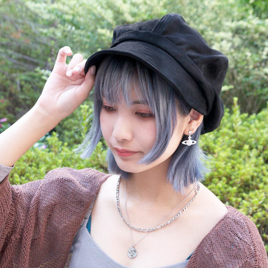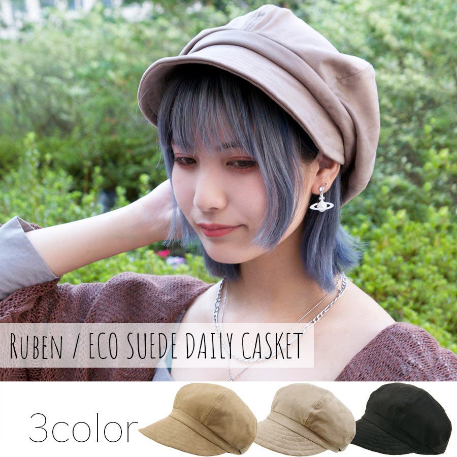 帽子×マスクでも重くならないエコスエードは柔らかい印象に。
