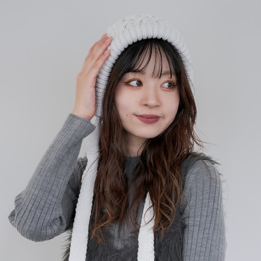 顔周りのリブで立体感が出るので、のっぺり見えず小顔効果も◎。