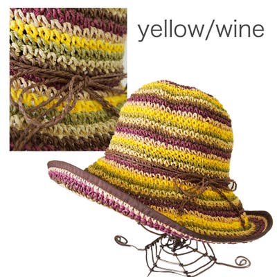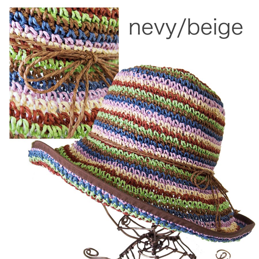 カラフルボーダー ペーパーハット つば広ハット 春夏 紫外線対策
