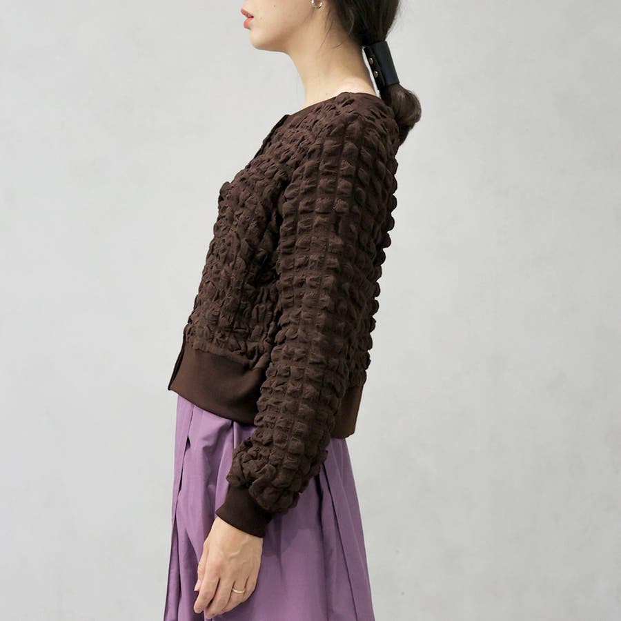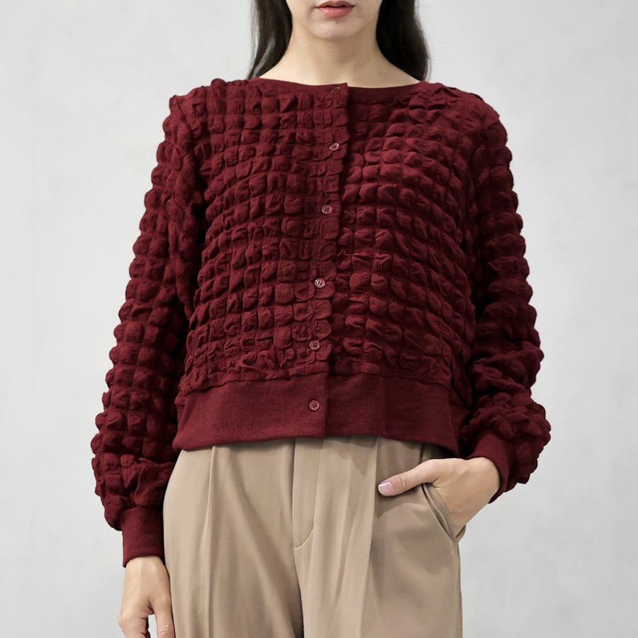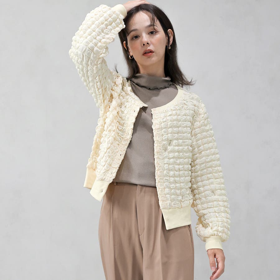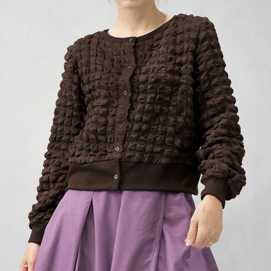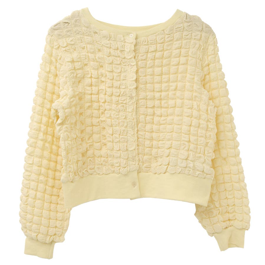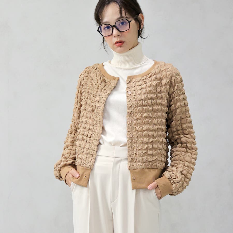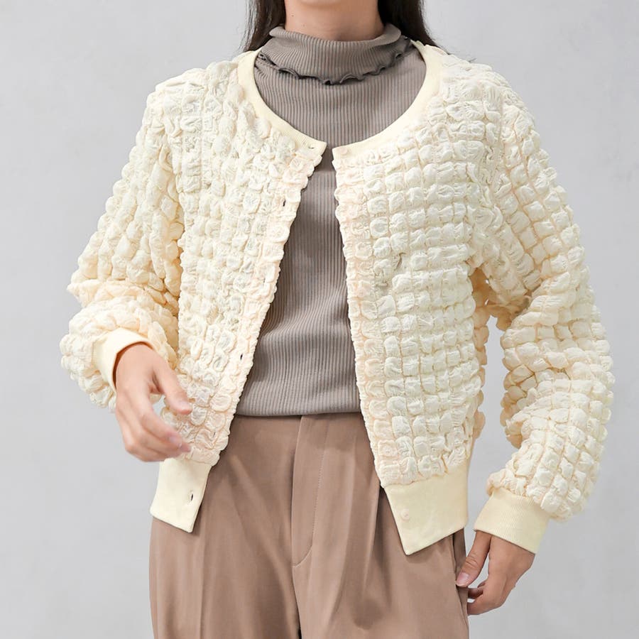 ポップコーンのようなポコポコとした素材が可愛いカーディガンです。