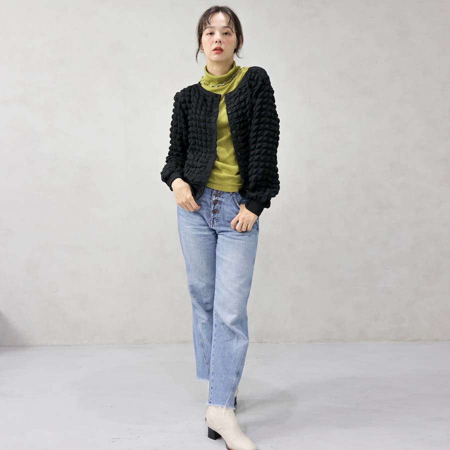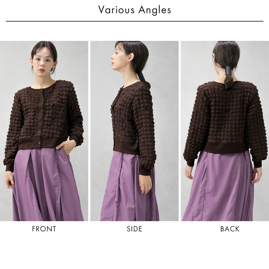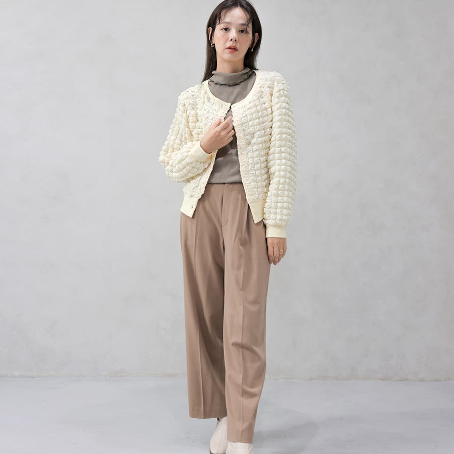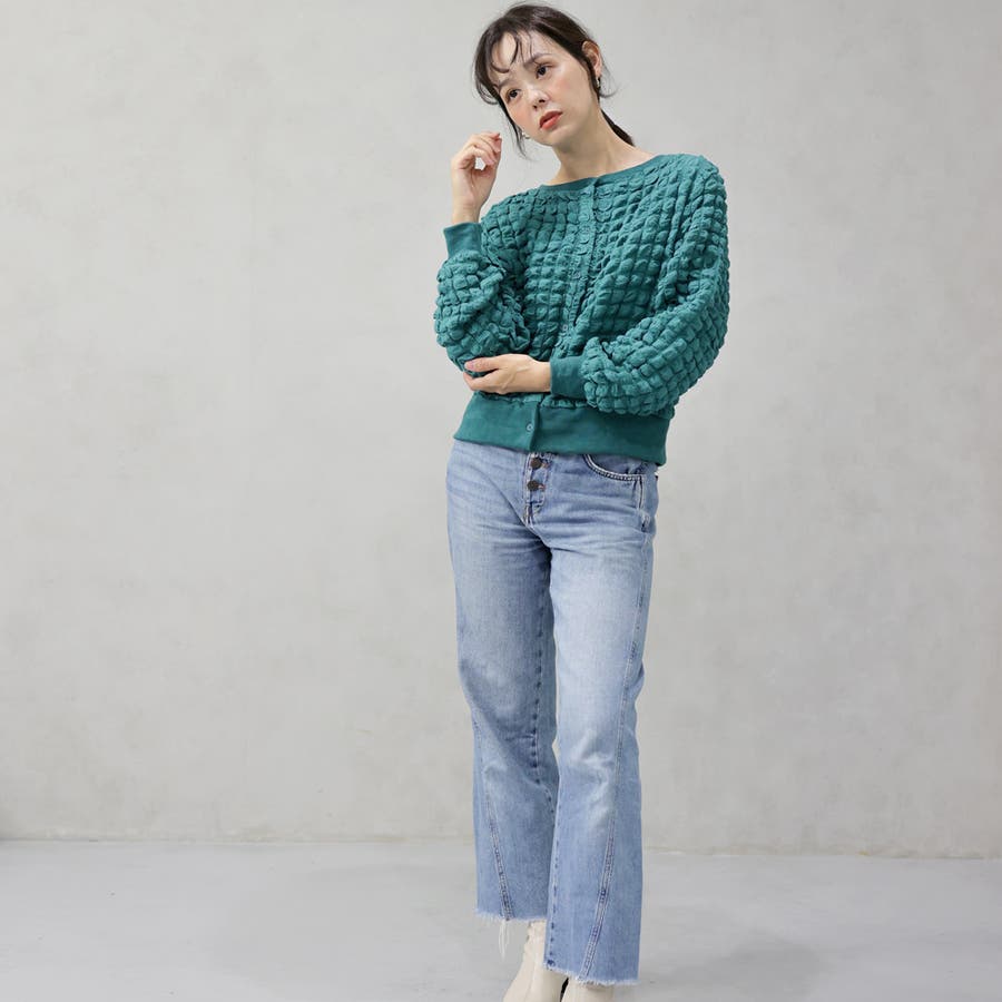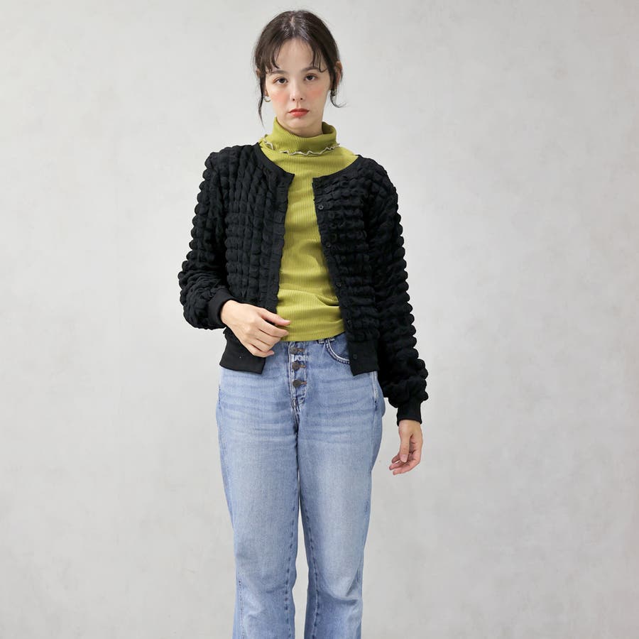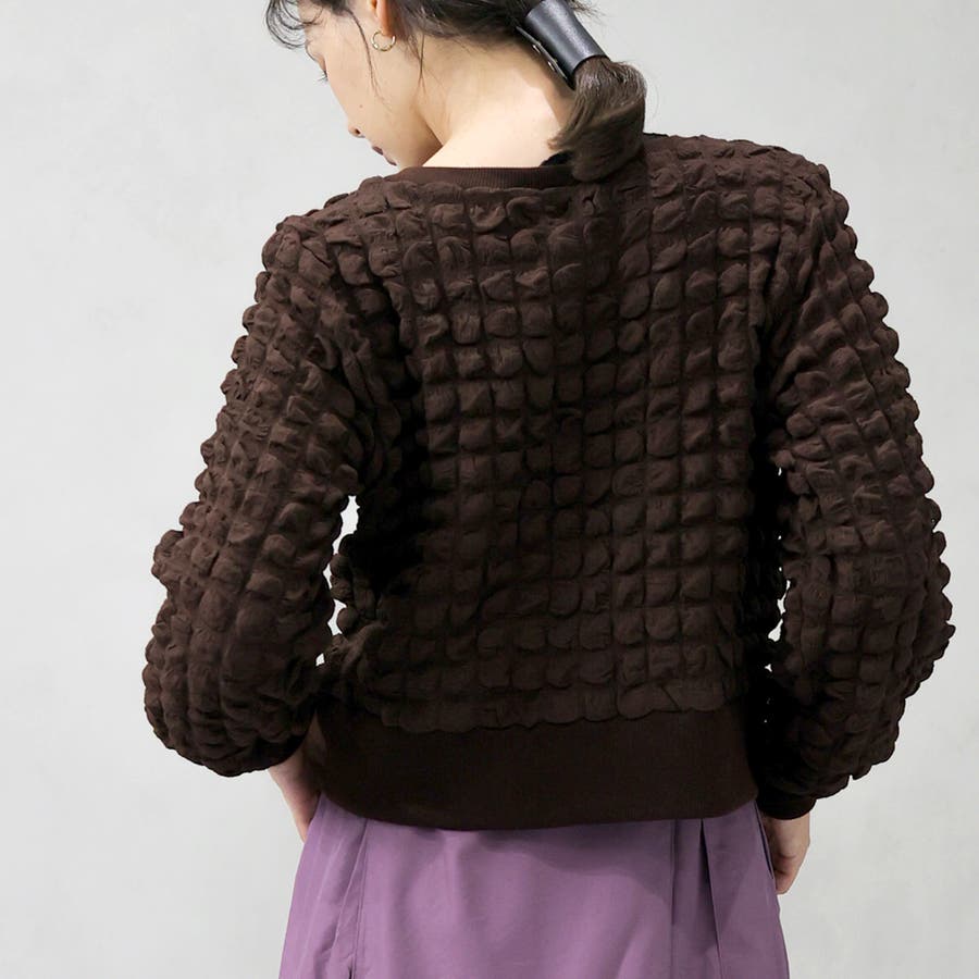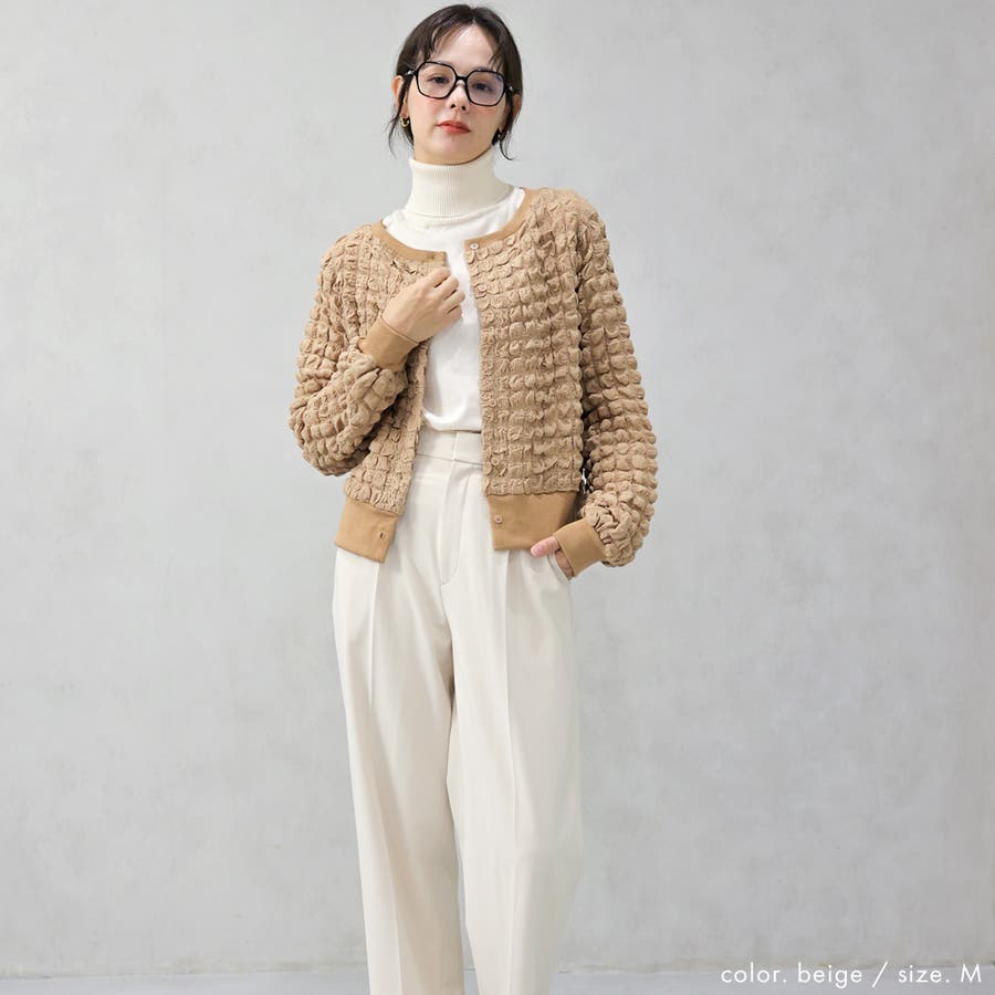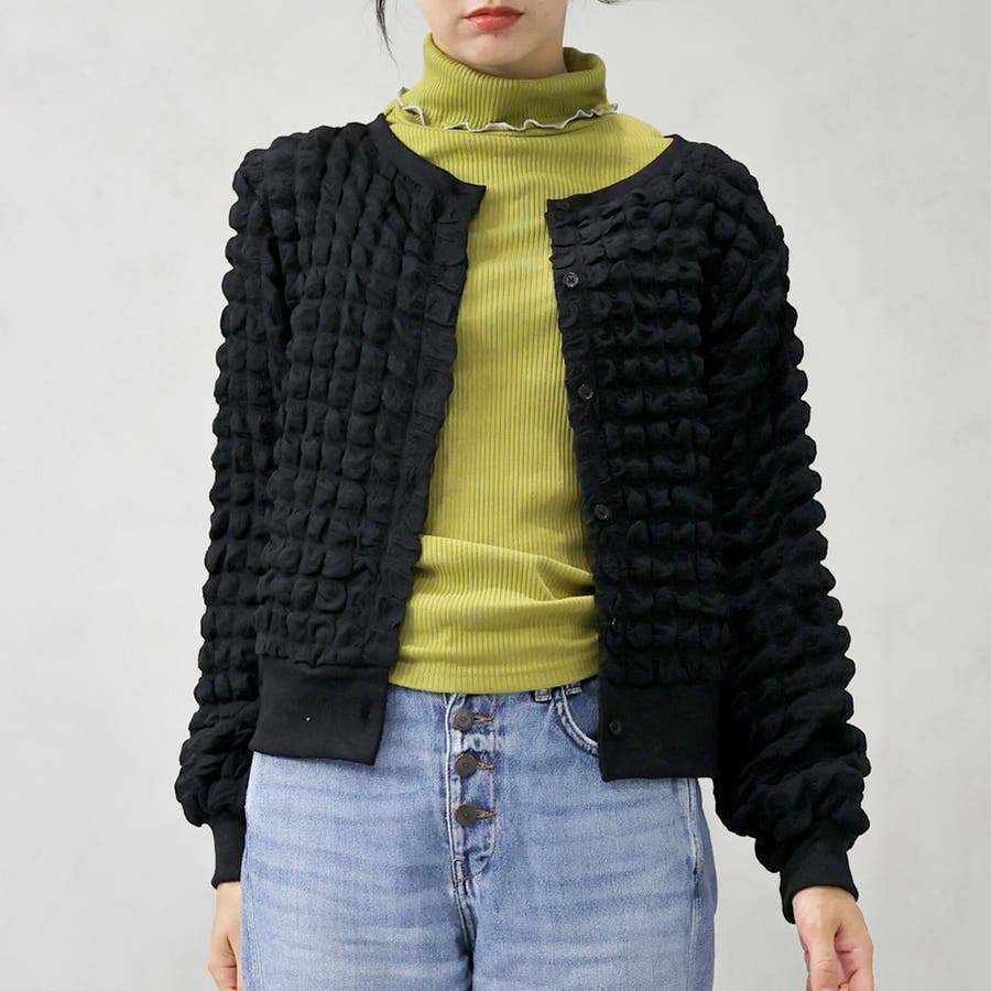 ポップコーンのようなポコポコとした素材が可愛いカーディガンです。