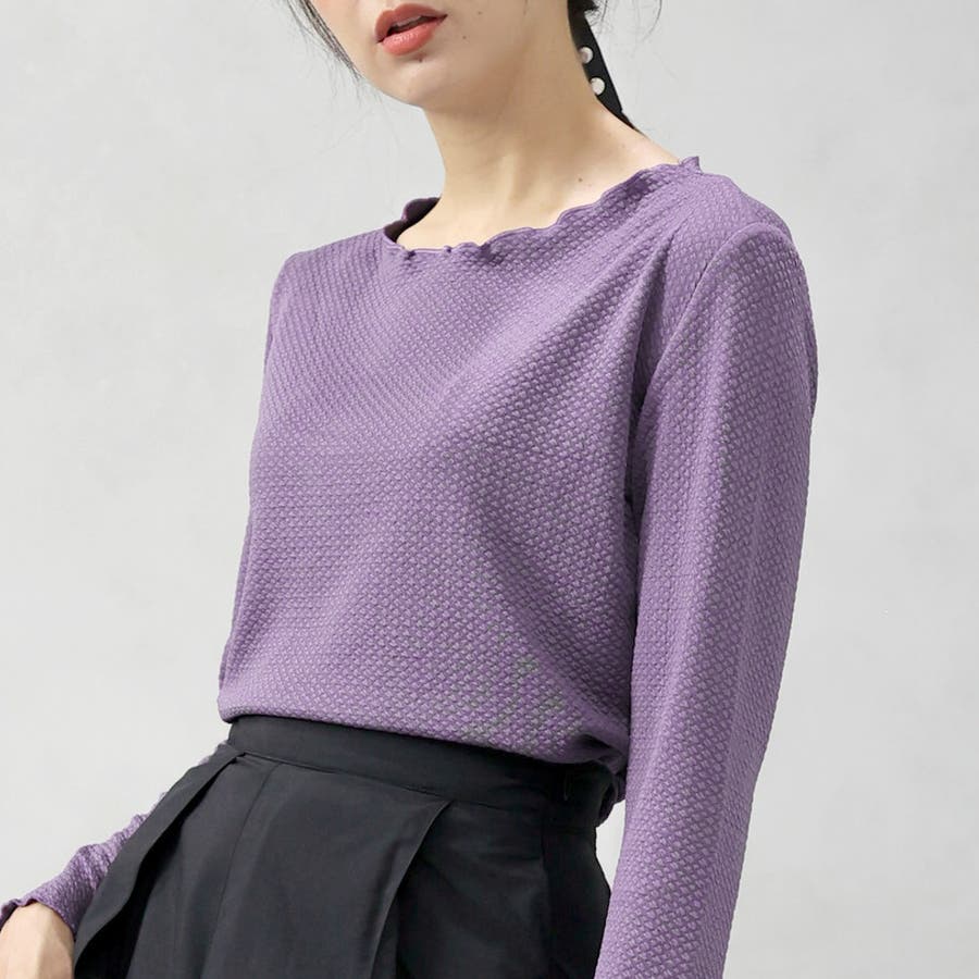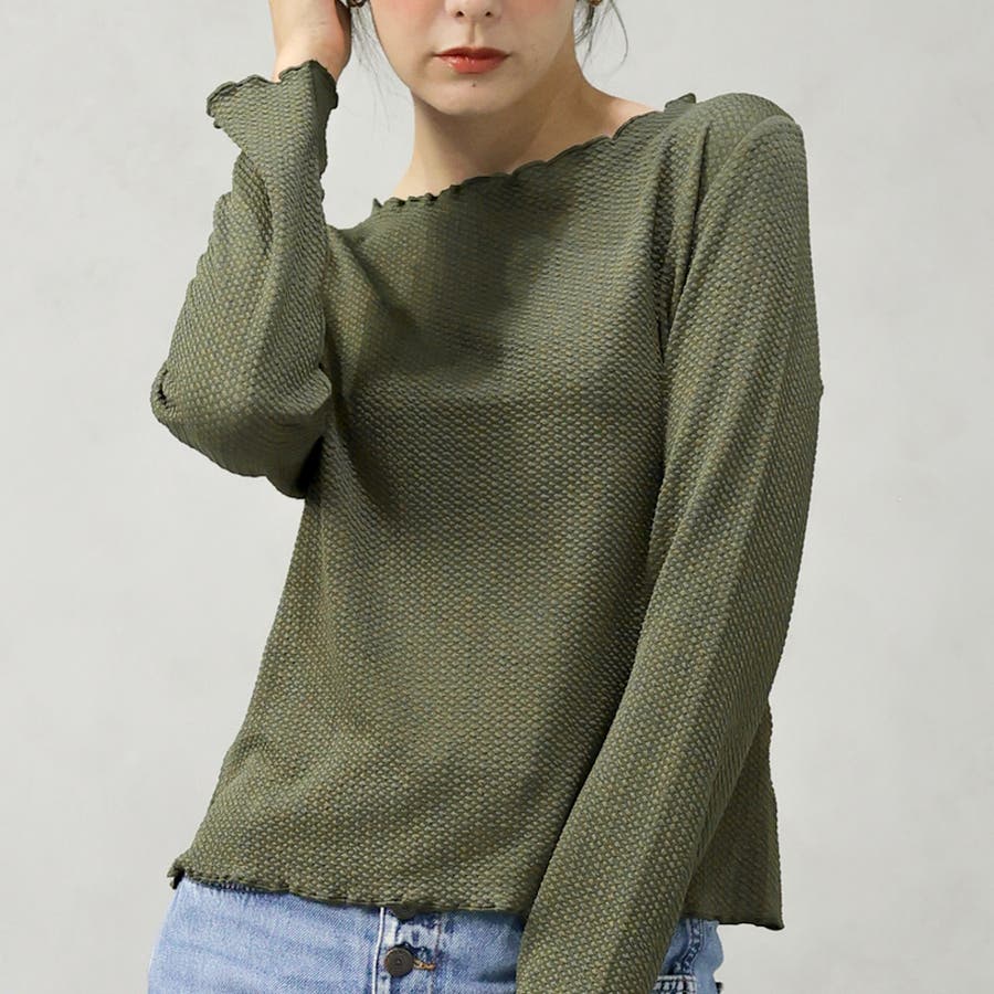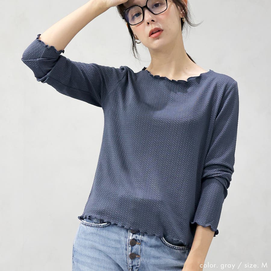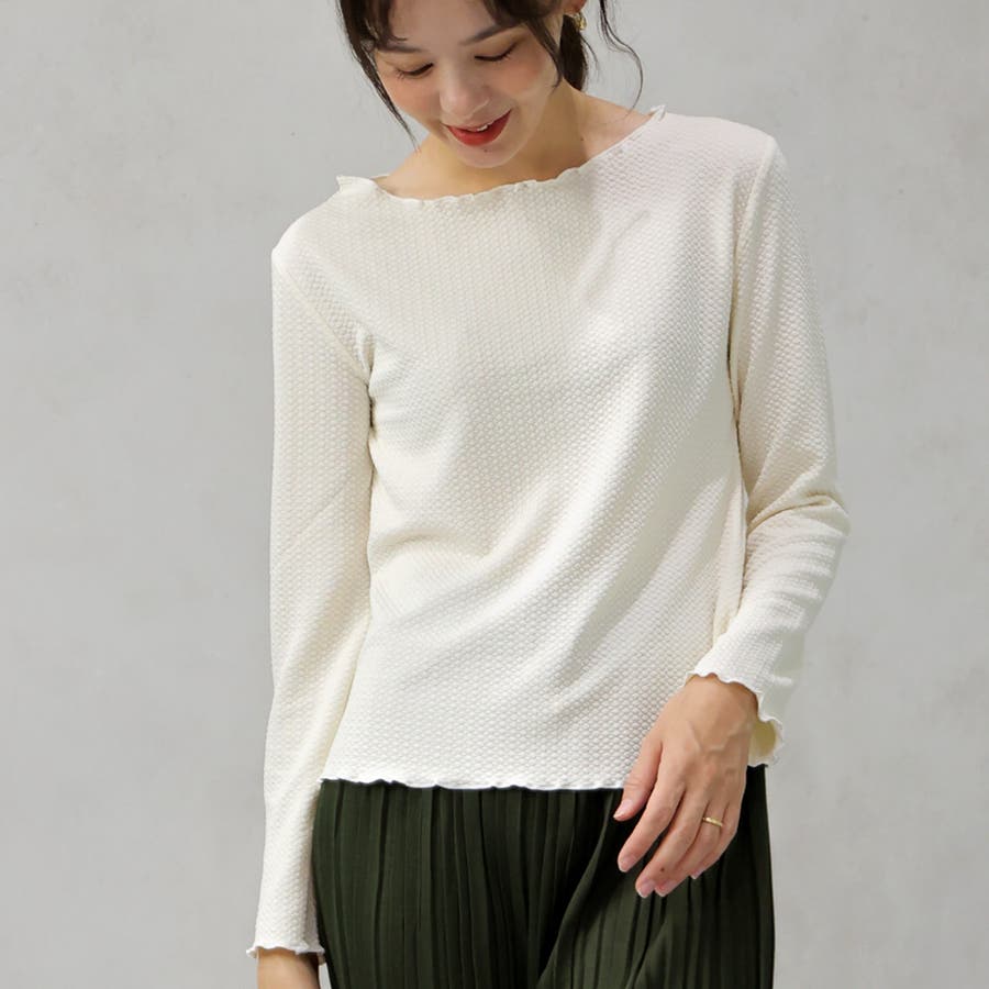 「女っぽく今っぽい。ぽこぽこ素材メロウカットソー」