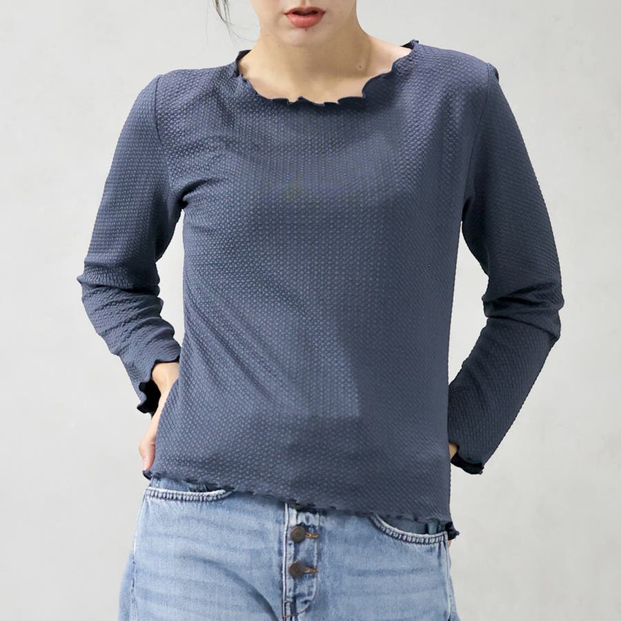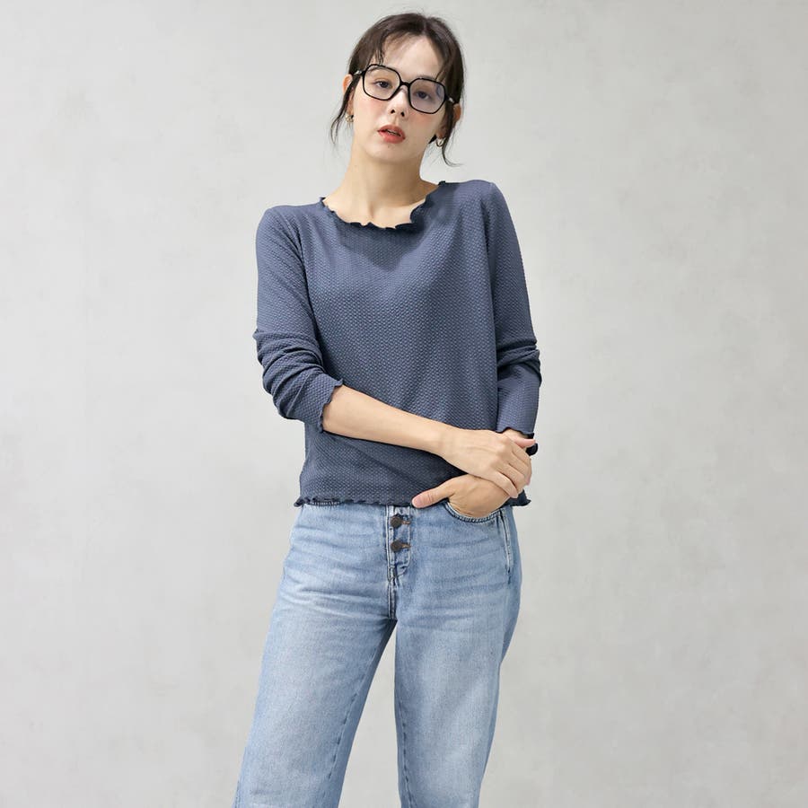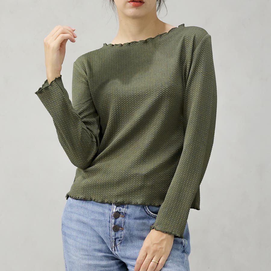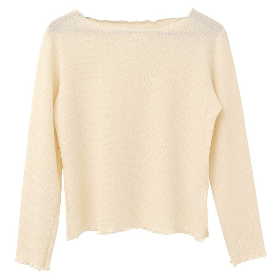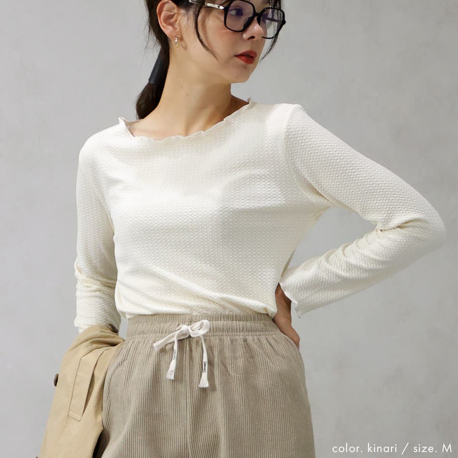 「女っぽく今っぽい。ぽこぽこ素材メロウカットソー」