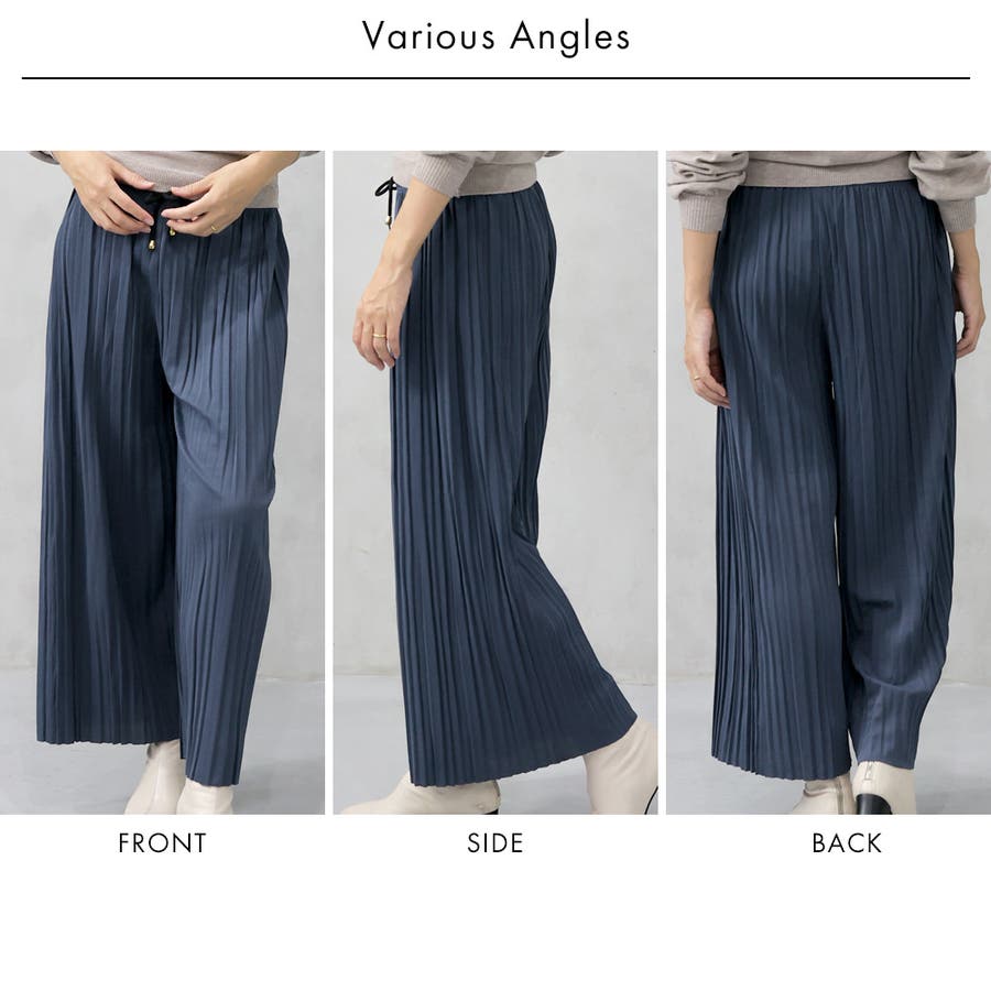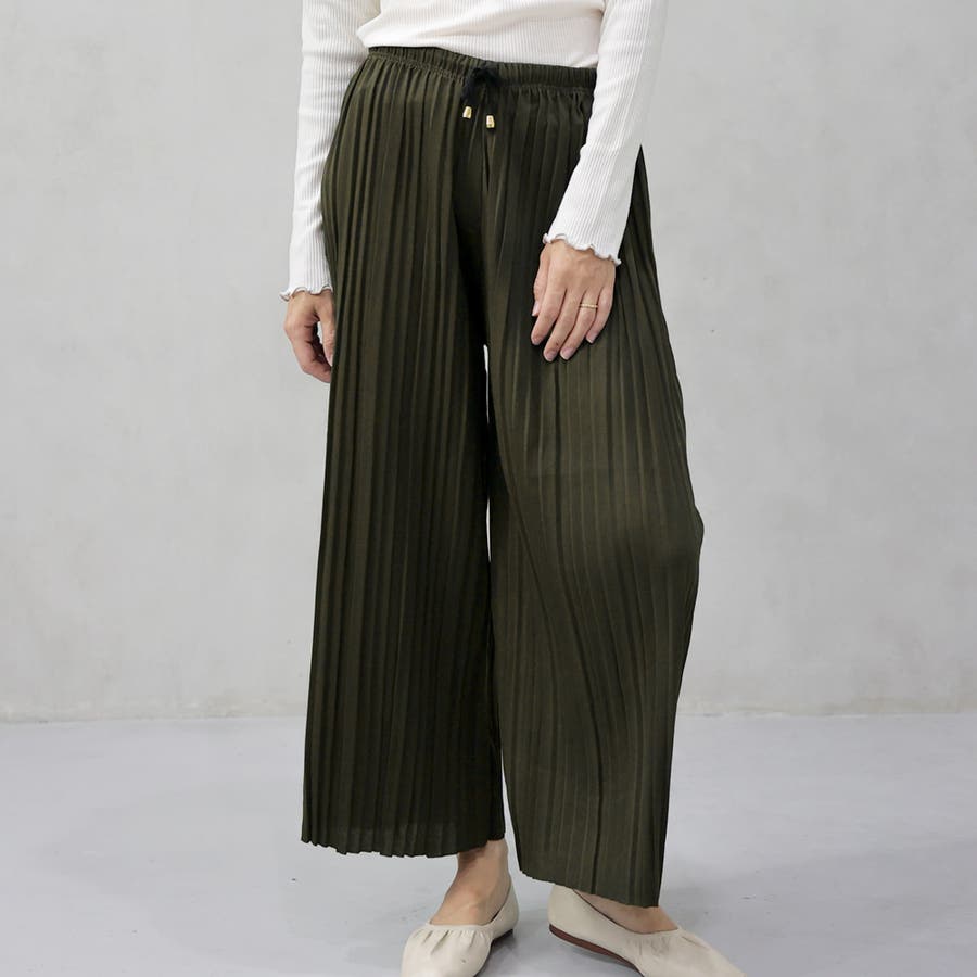 ランダムな太いプリーツを施した、歩くたびに揺れるキレイめ素材です。