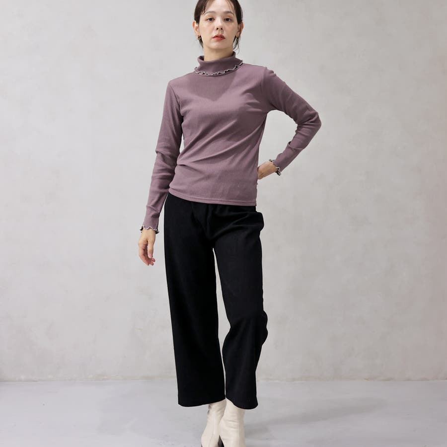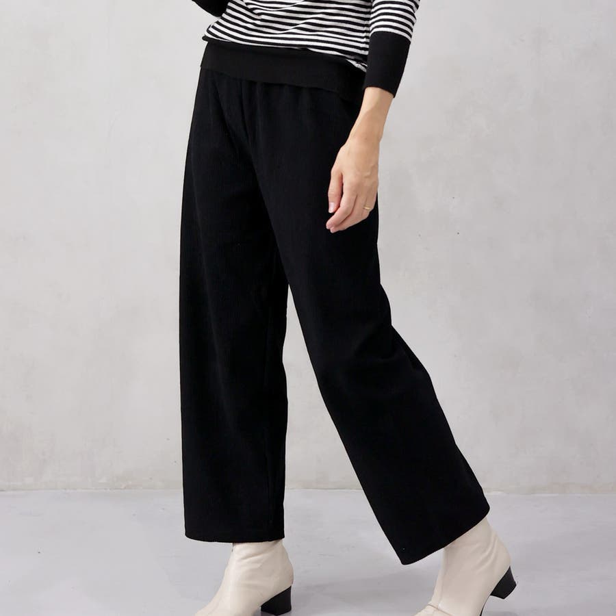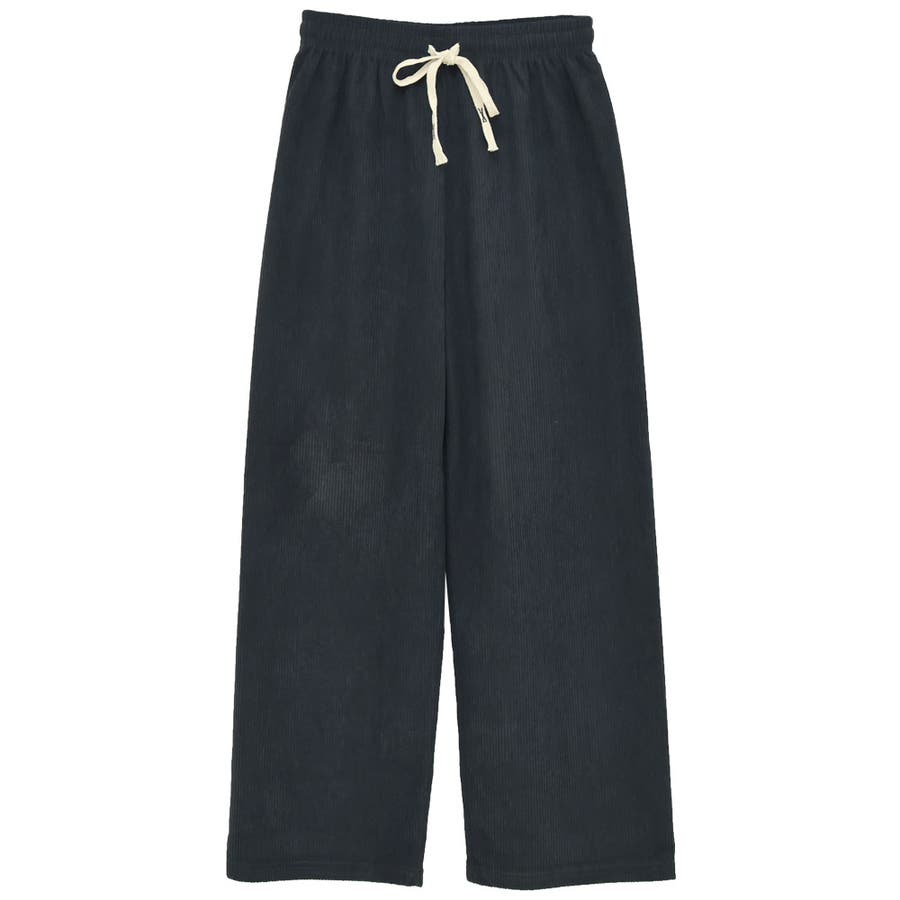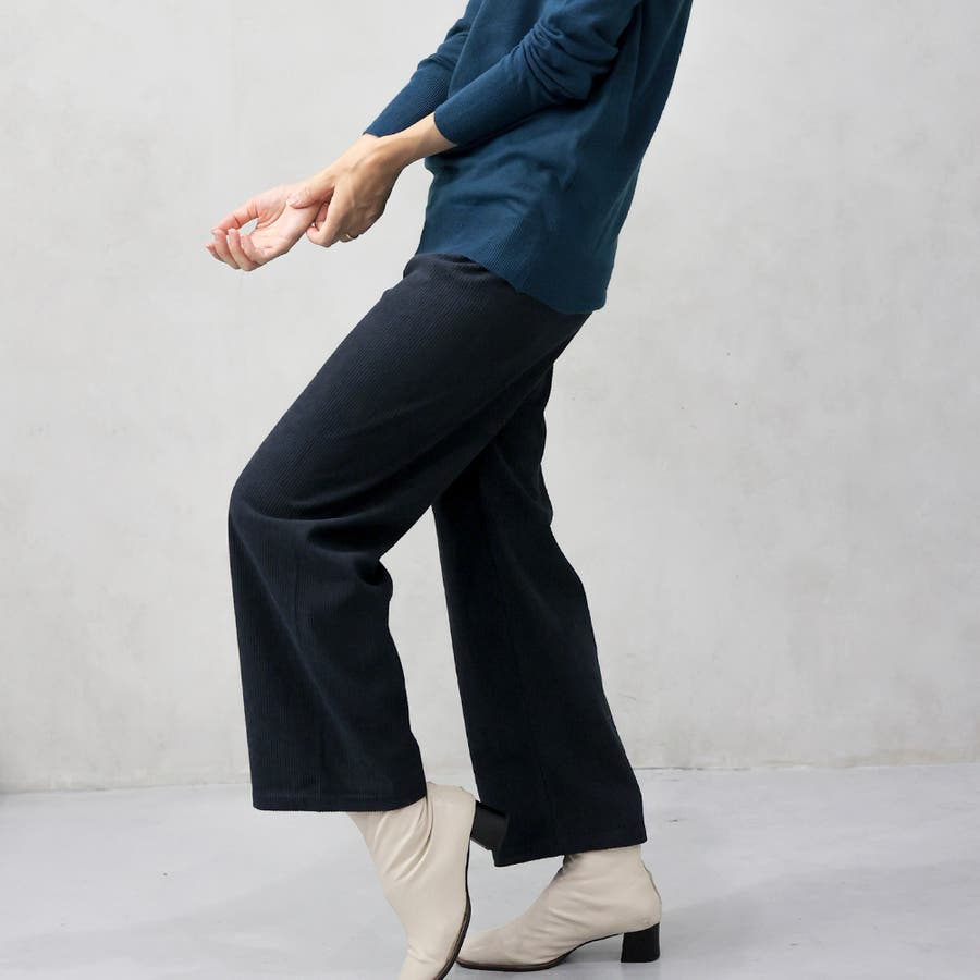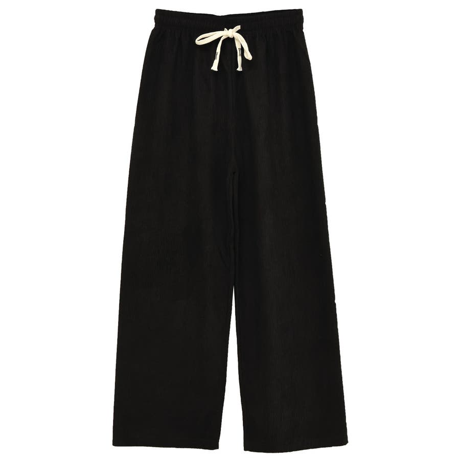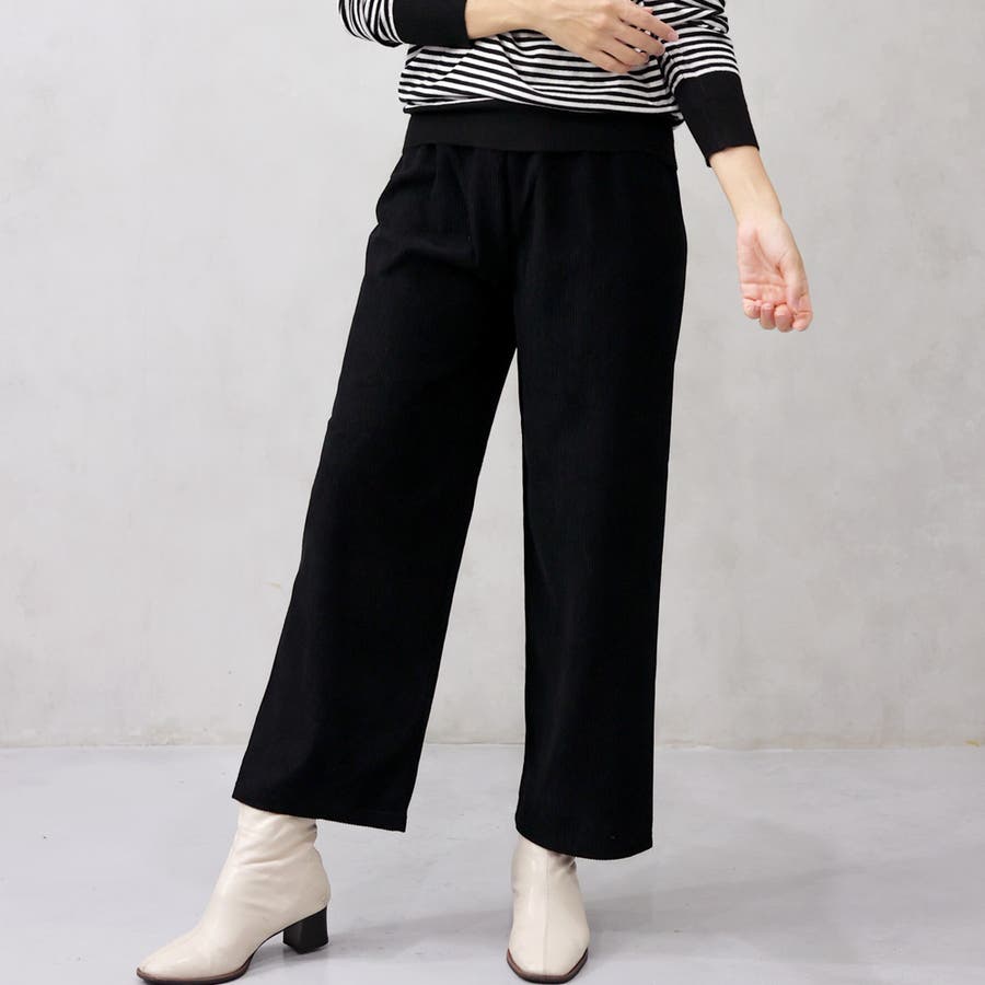 幅広いコーディネートに着回しのきく、ワイドコールのゆるパンツ。