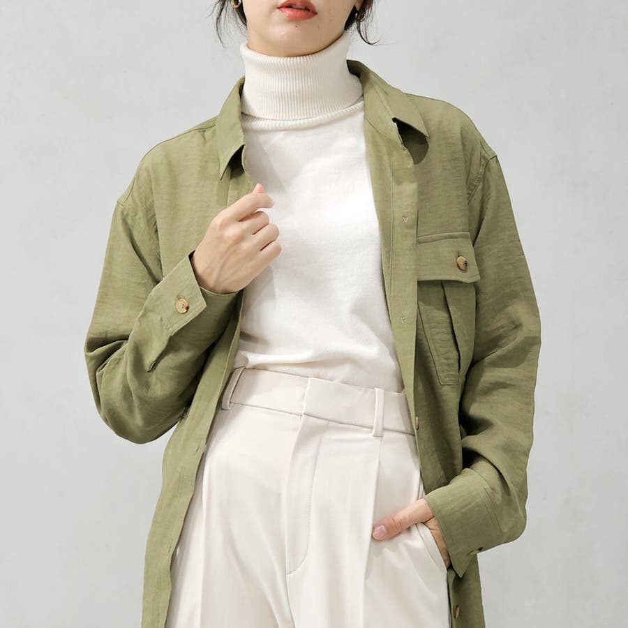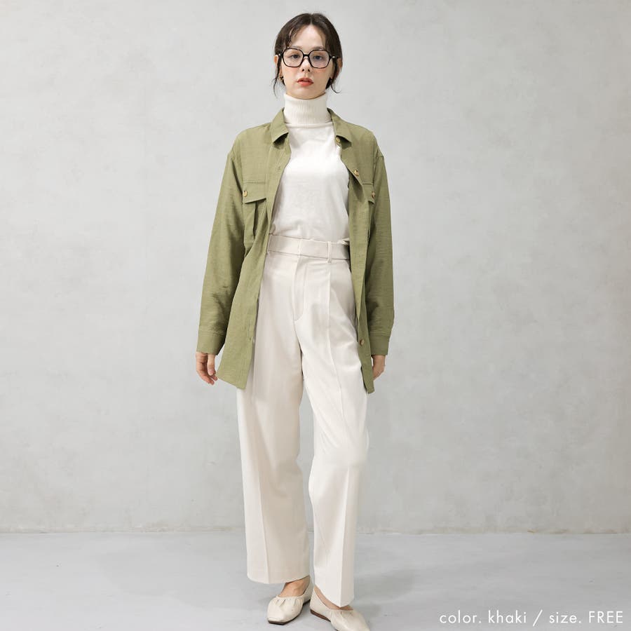 キレイ見えする素材で仕立てたサファリシャツジャケットです。