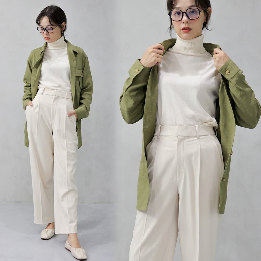 共地ベルトでウエストマークしたり、フロントの釦を開けて羽織ったり、1着で何通りも楽しめるアイテム。