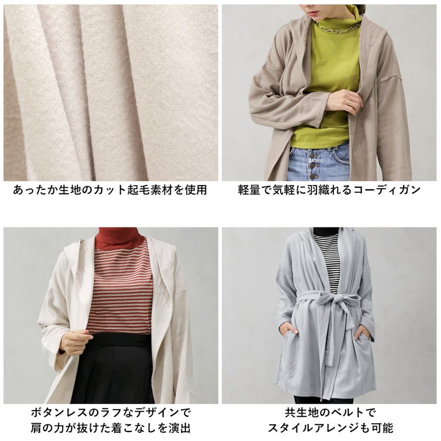 カット起毛素材なので気軽に羽織れるのがうれしいコーディガン。