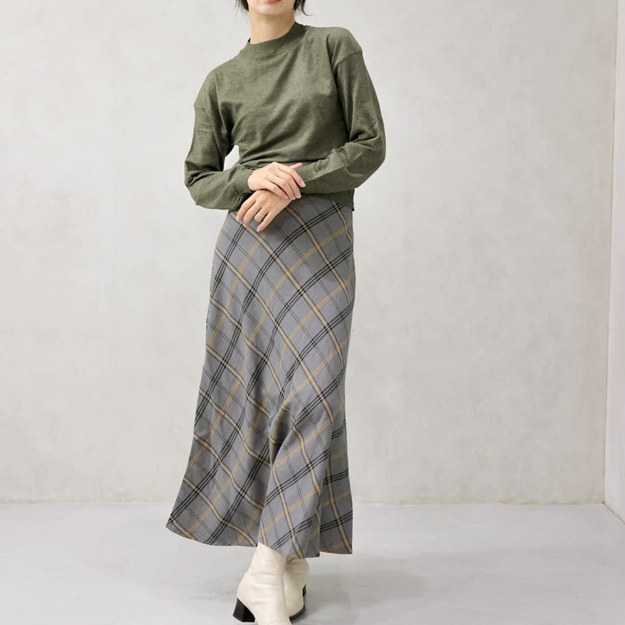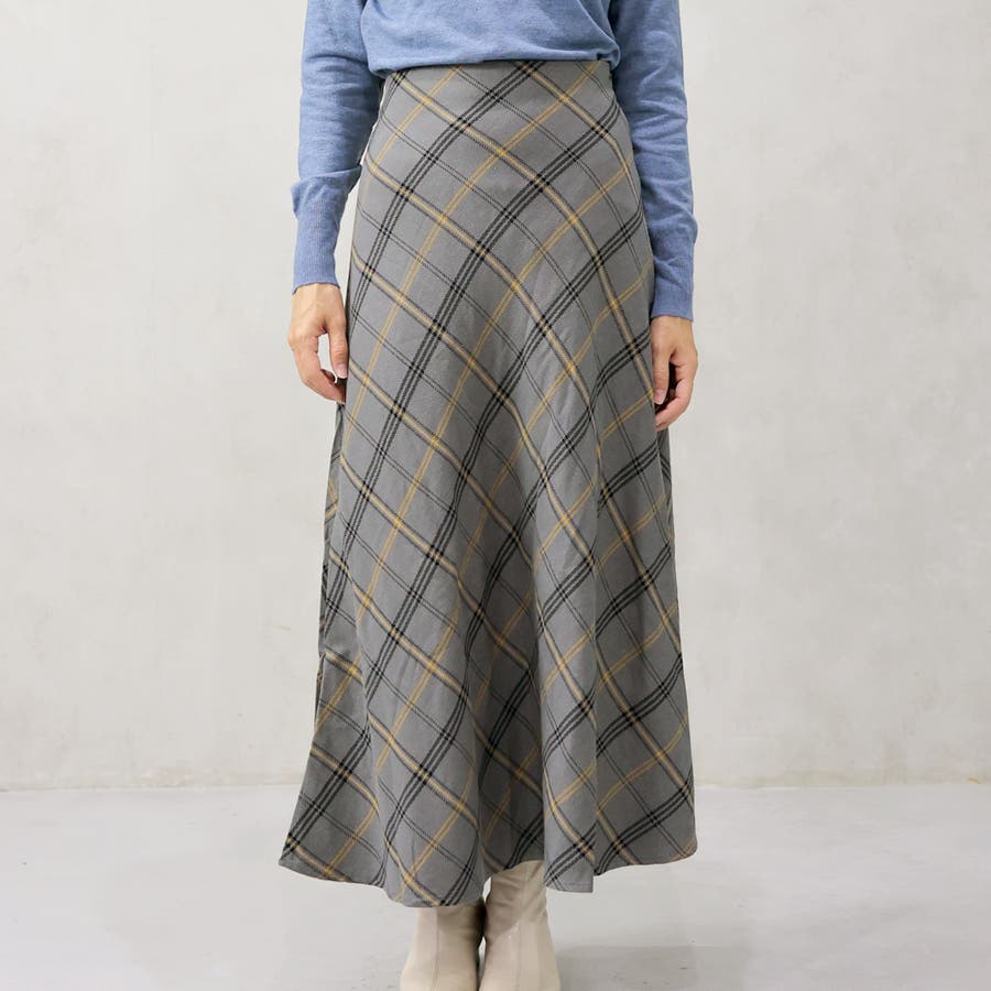 ヘリンボーンバイアスチェックスカート