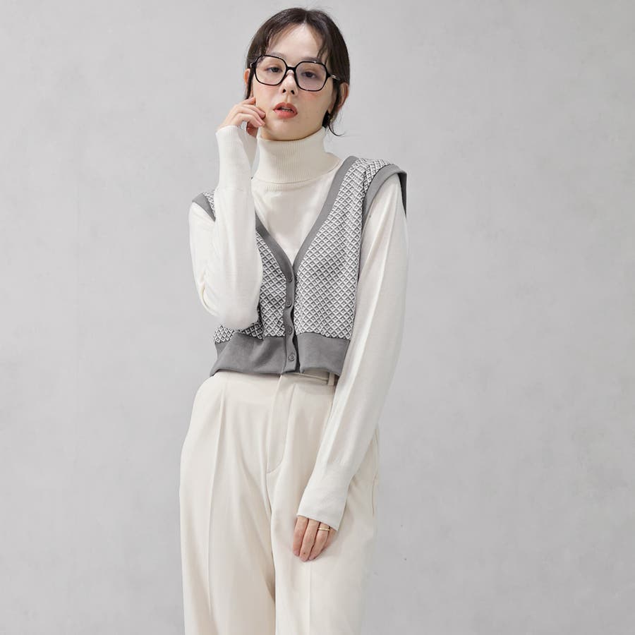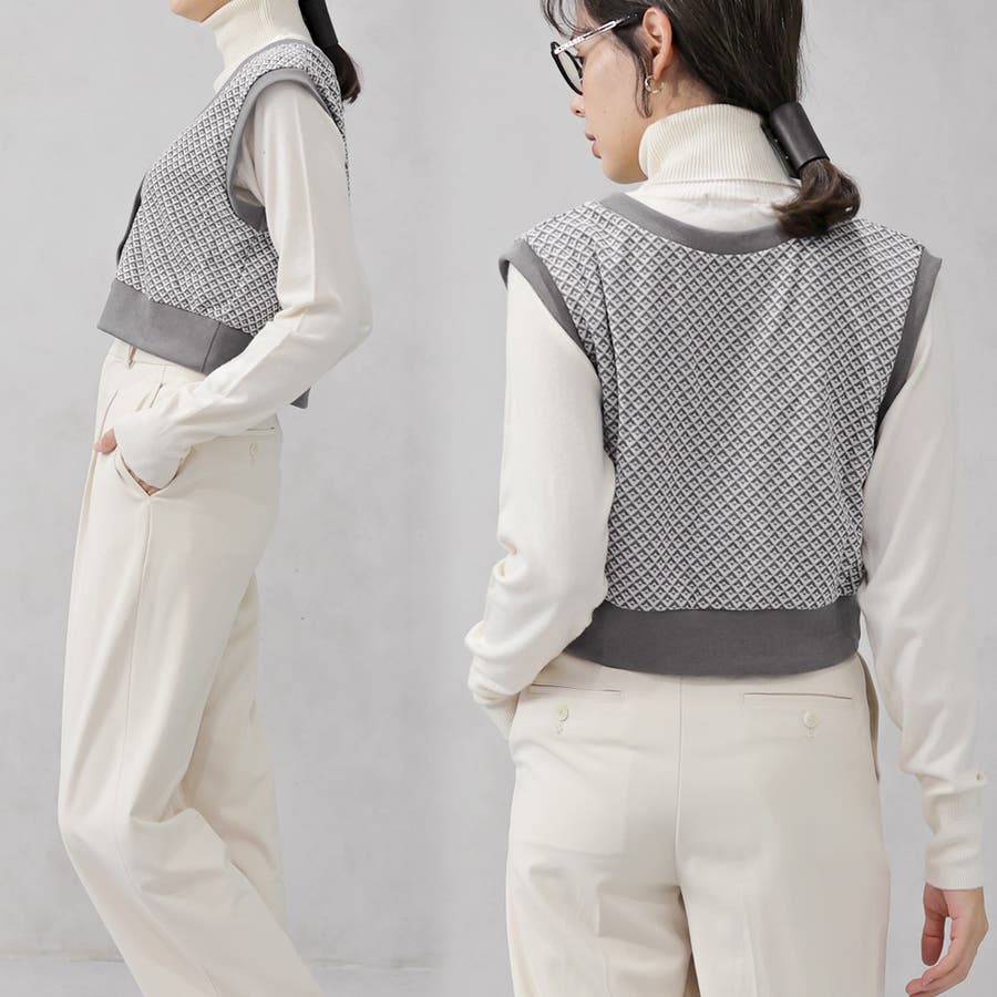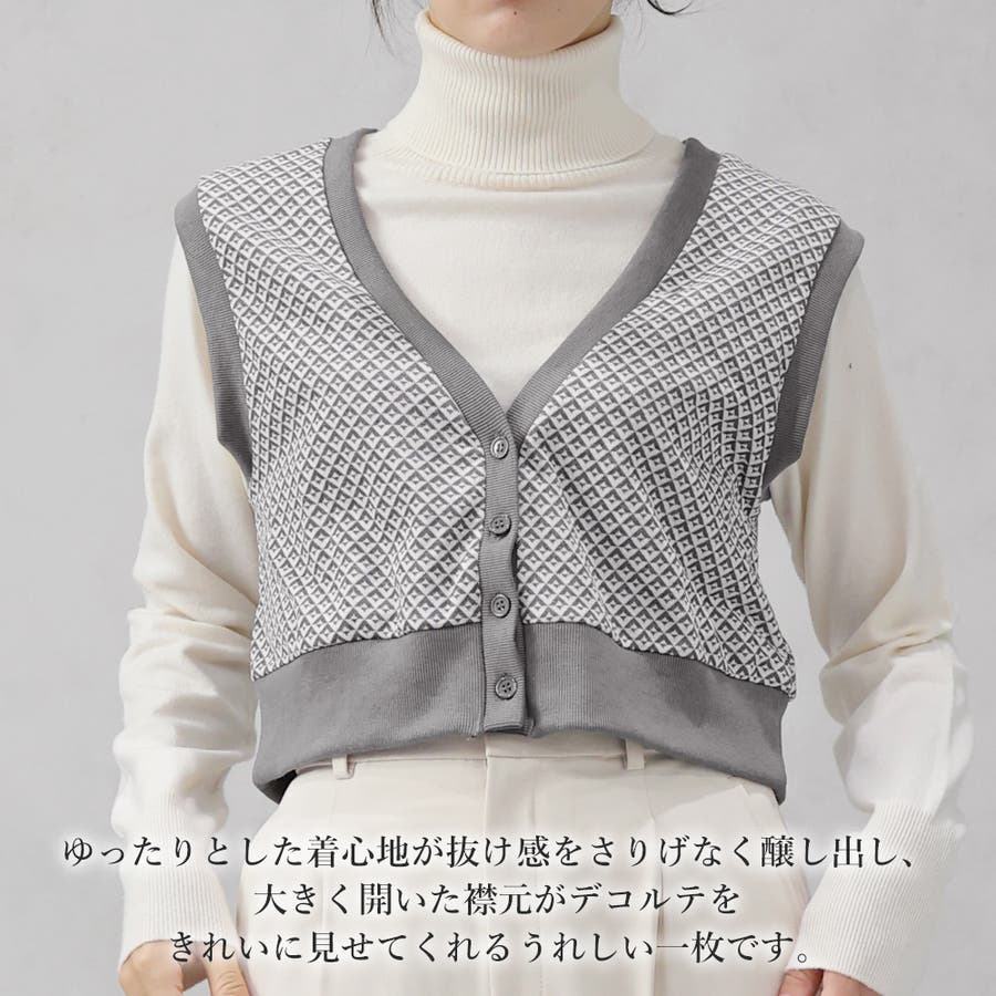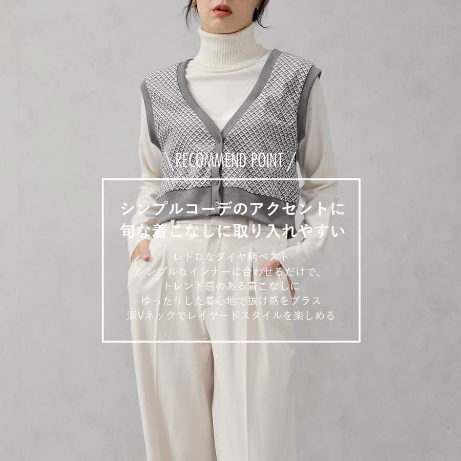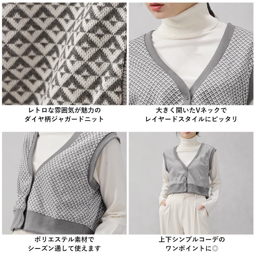 ダイヤ柄ジャガードニットベスト