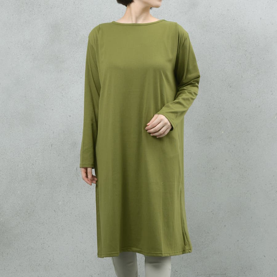 丈夫で程良い厚みのカットソー生地はロングシーズン使いやすい。