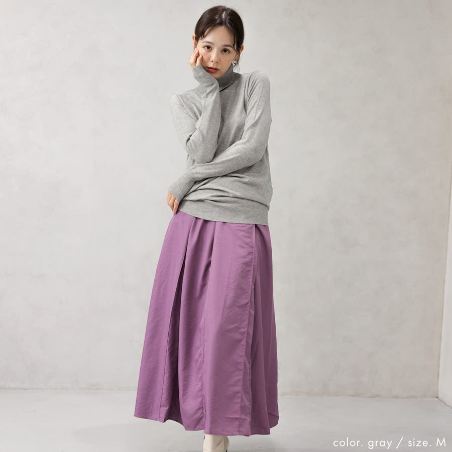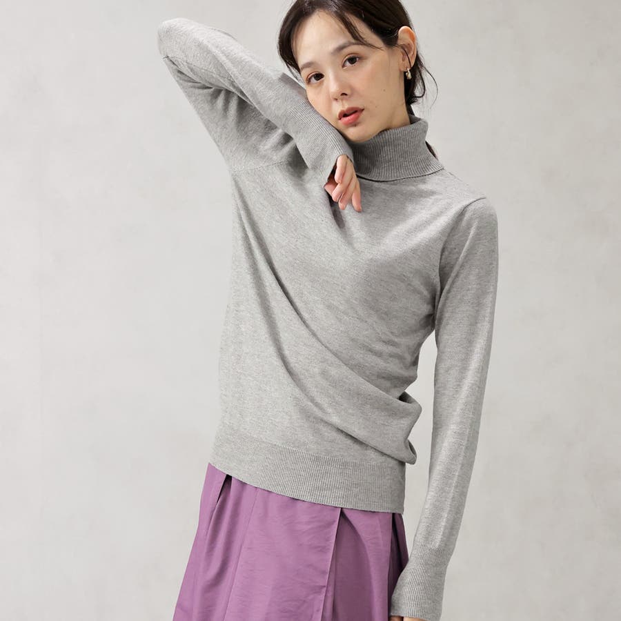 もちもちとした柔らかい肌触りの素材で仕上げたタートルネックのニットプルオーバー。