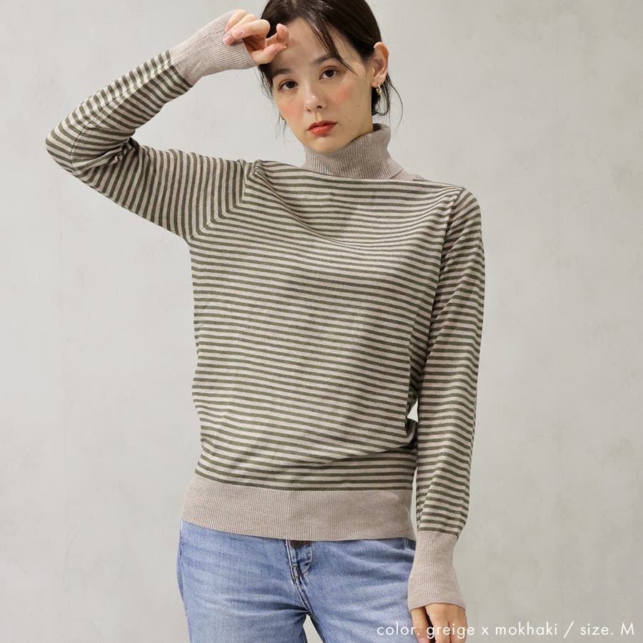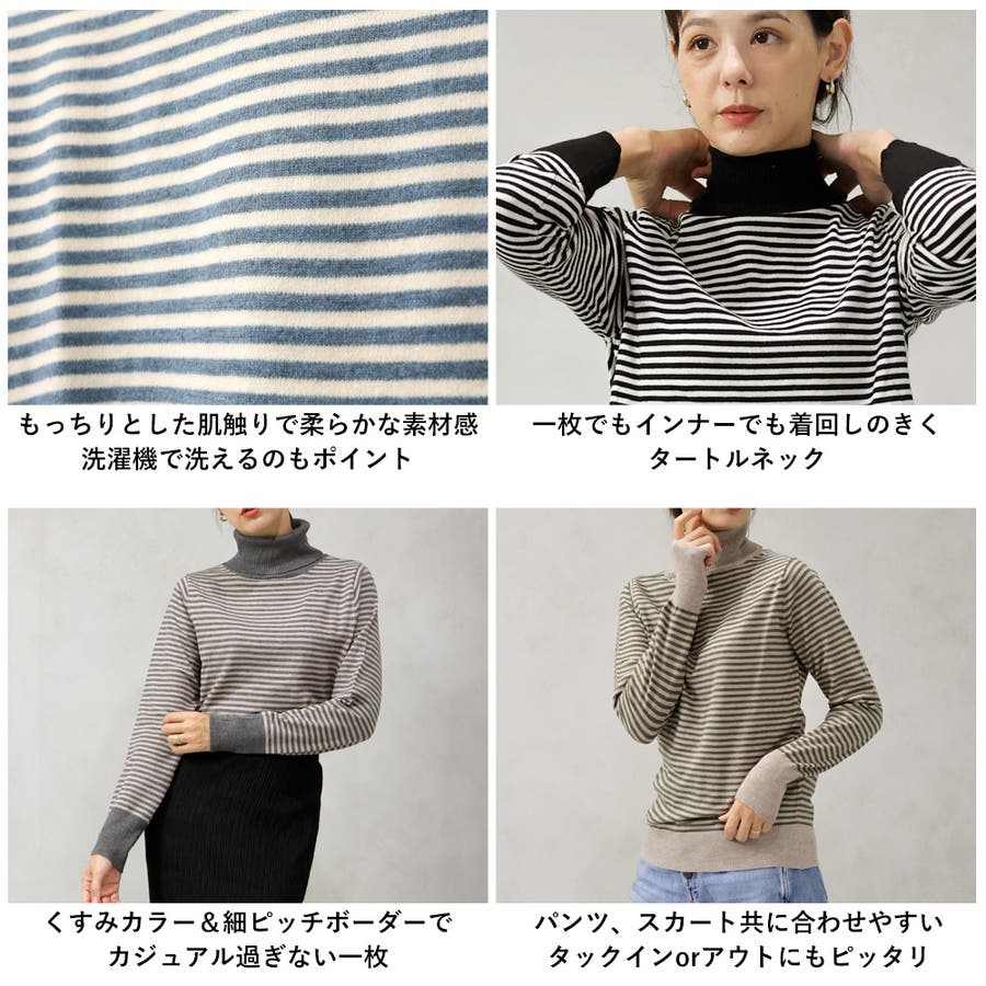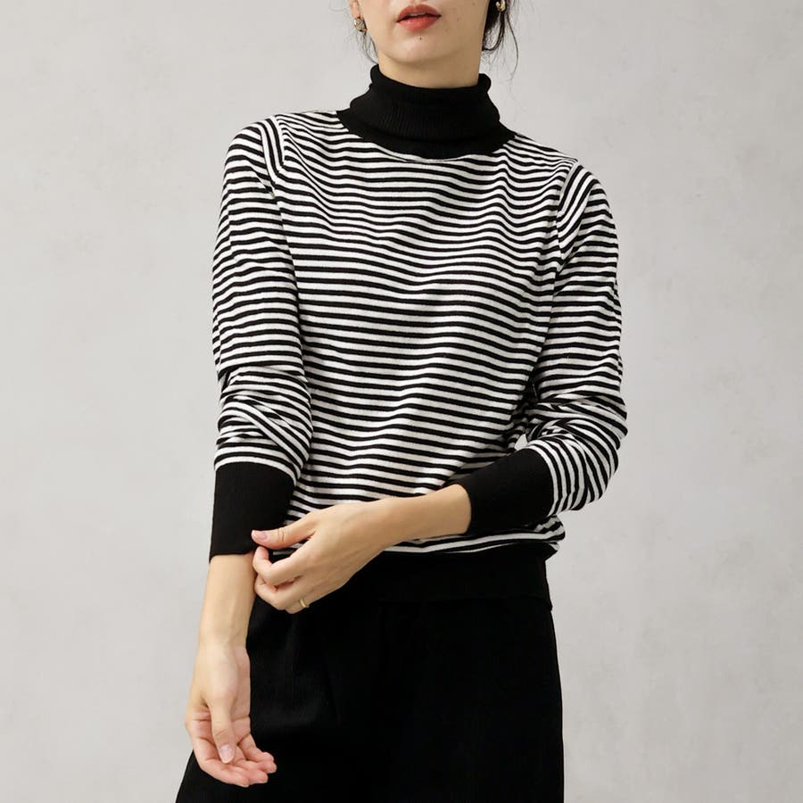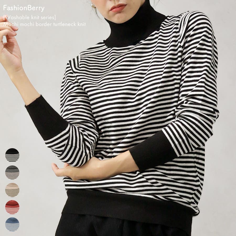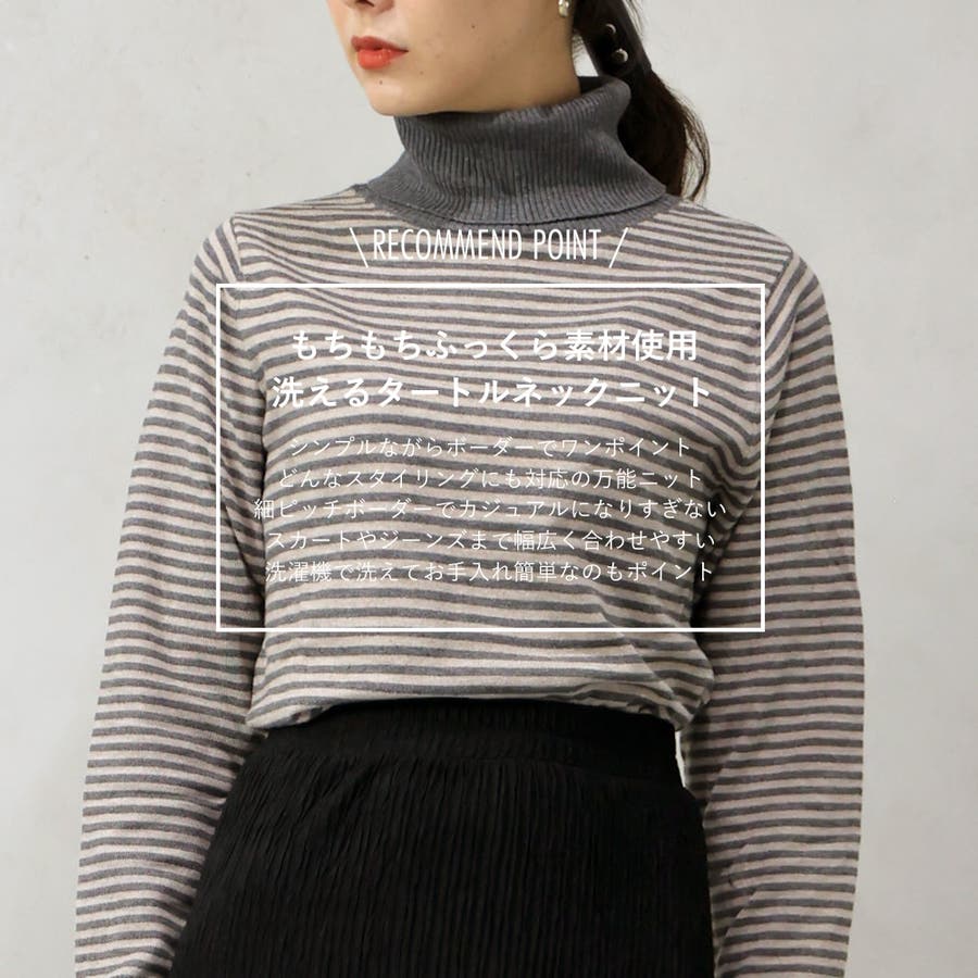 【洗えるニットシリーズ】もちもちニット ボーダータートルネックニット