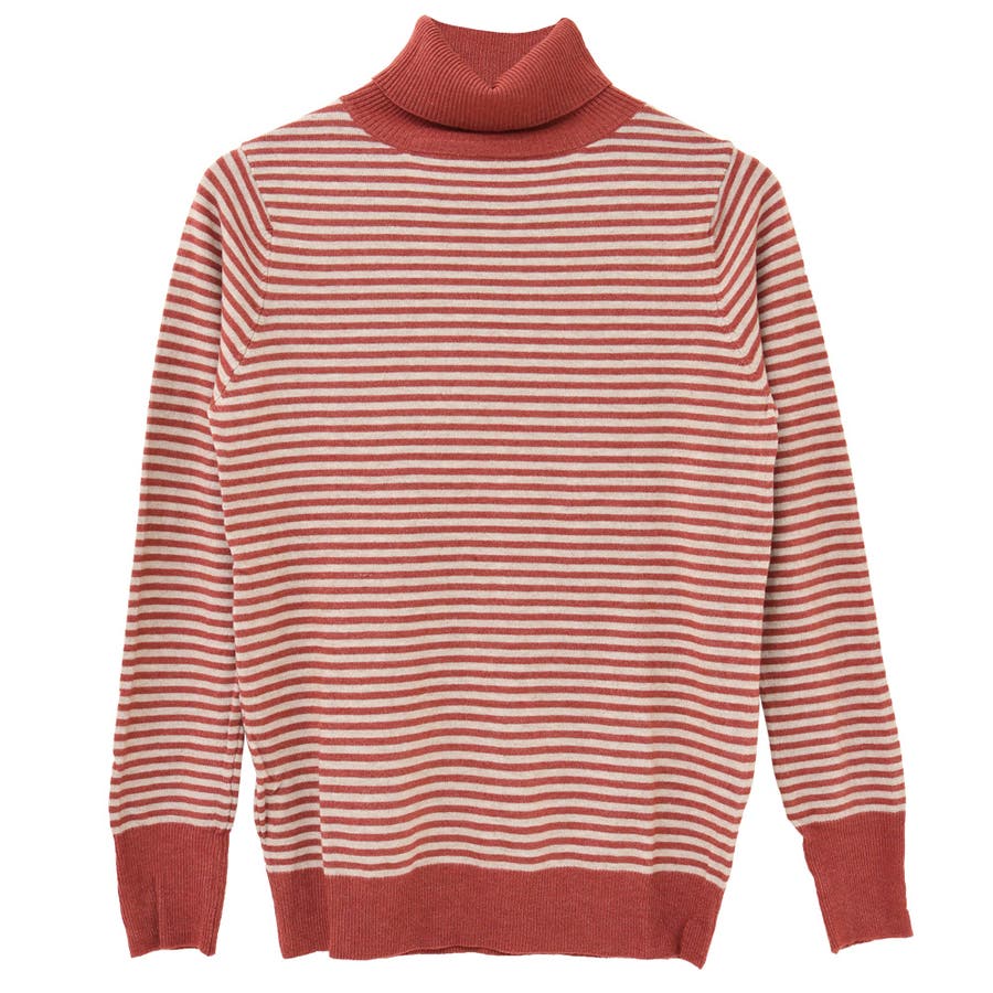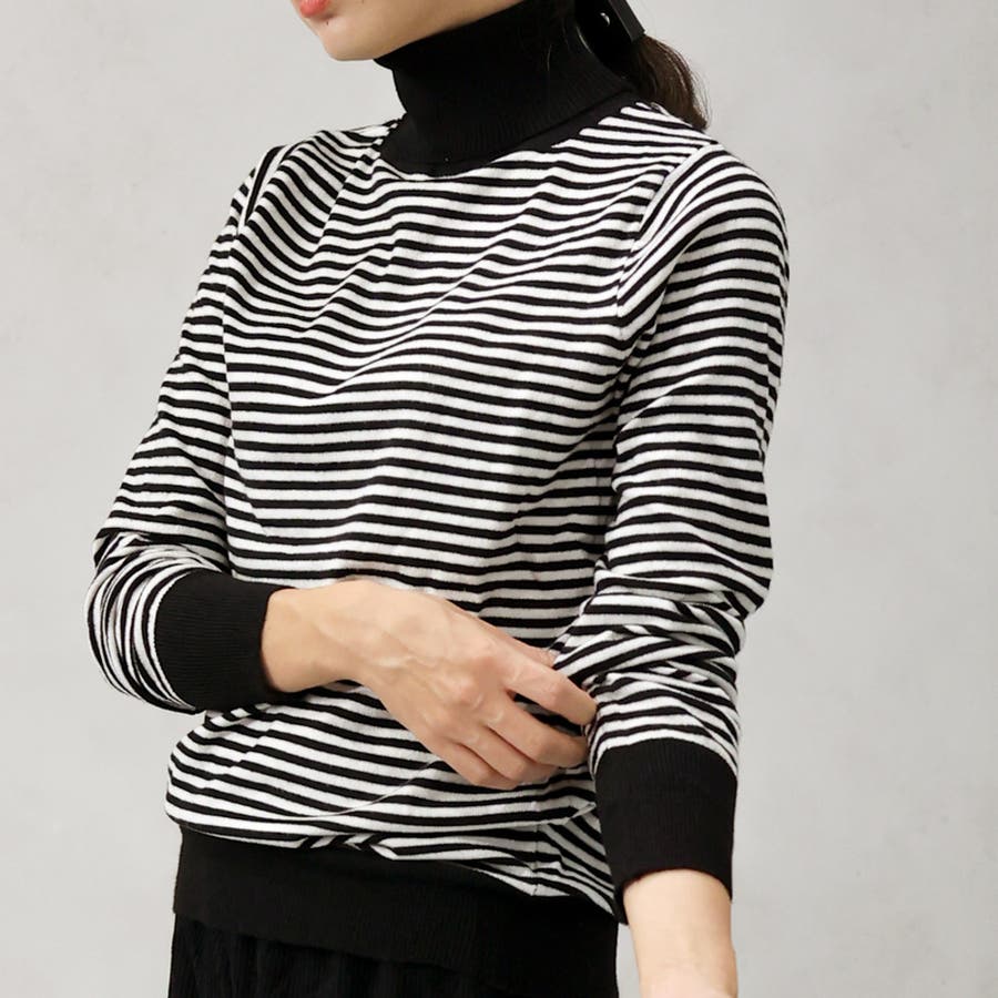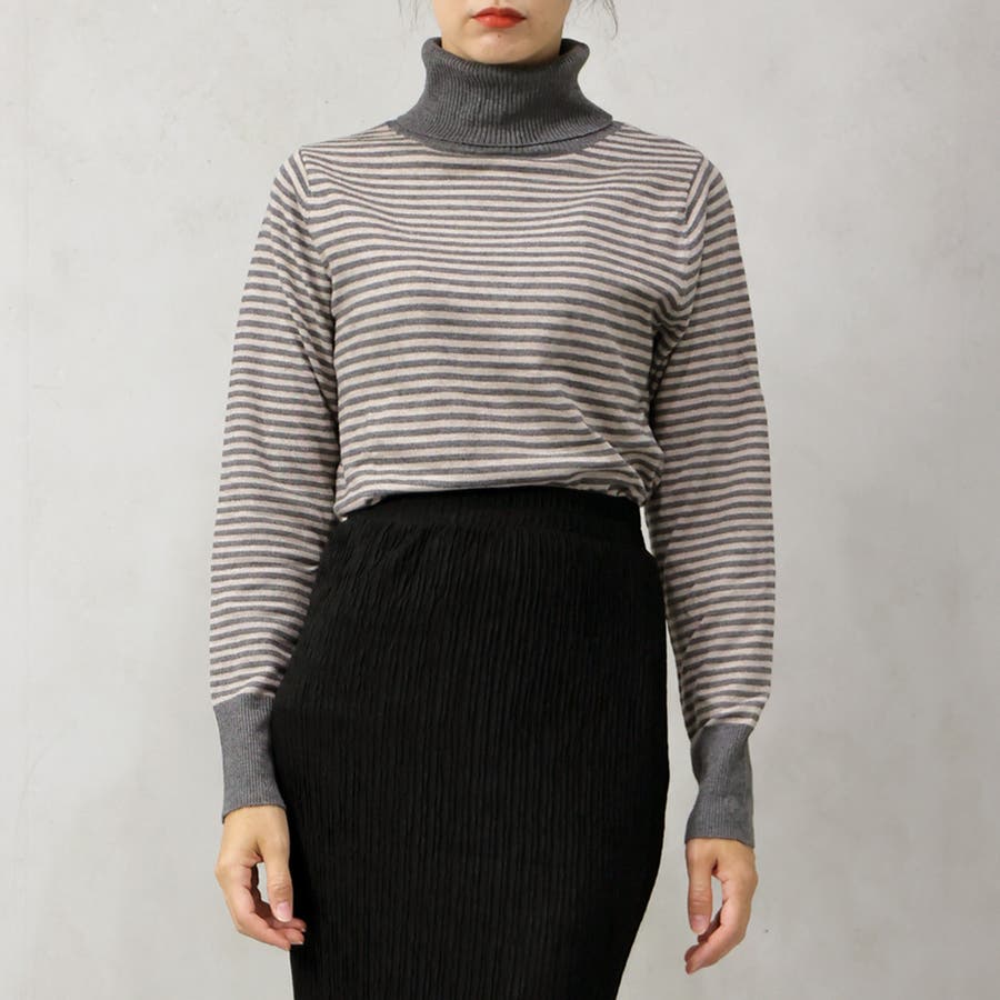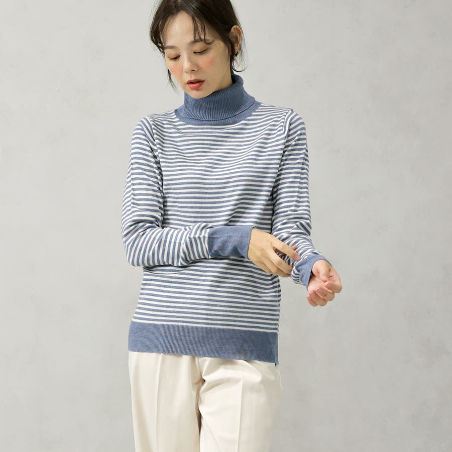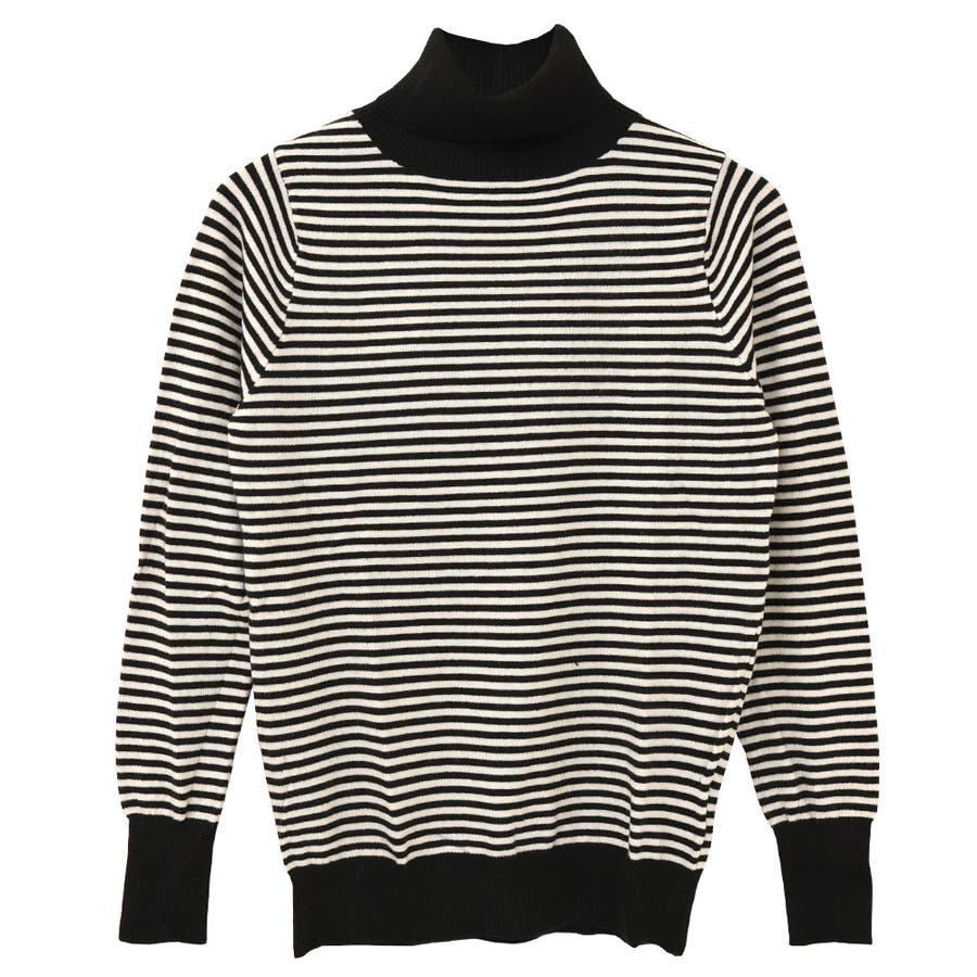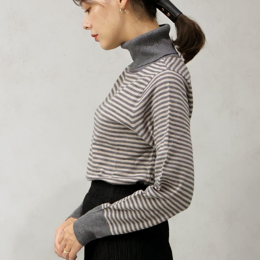 【洗えるニットシリーズ】もちもちニット ボーダータートルネックニット