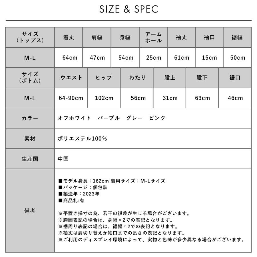 ボトム:ウエスト64-90 ヒップ102 ワタリ56 股上31 股下63 裾口46